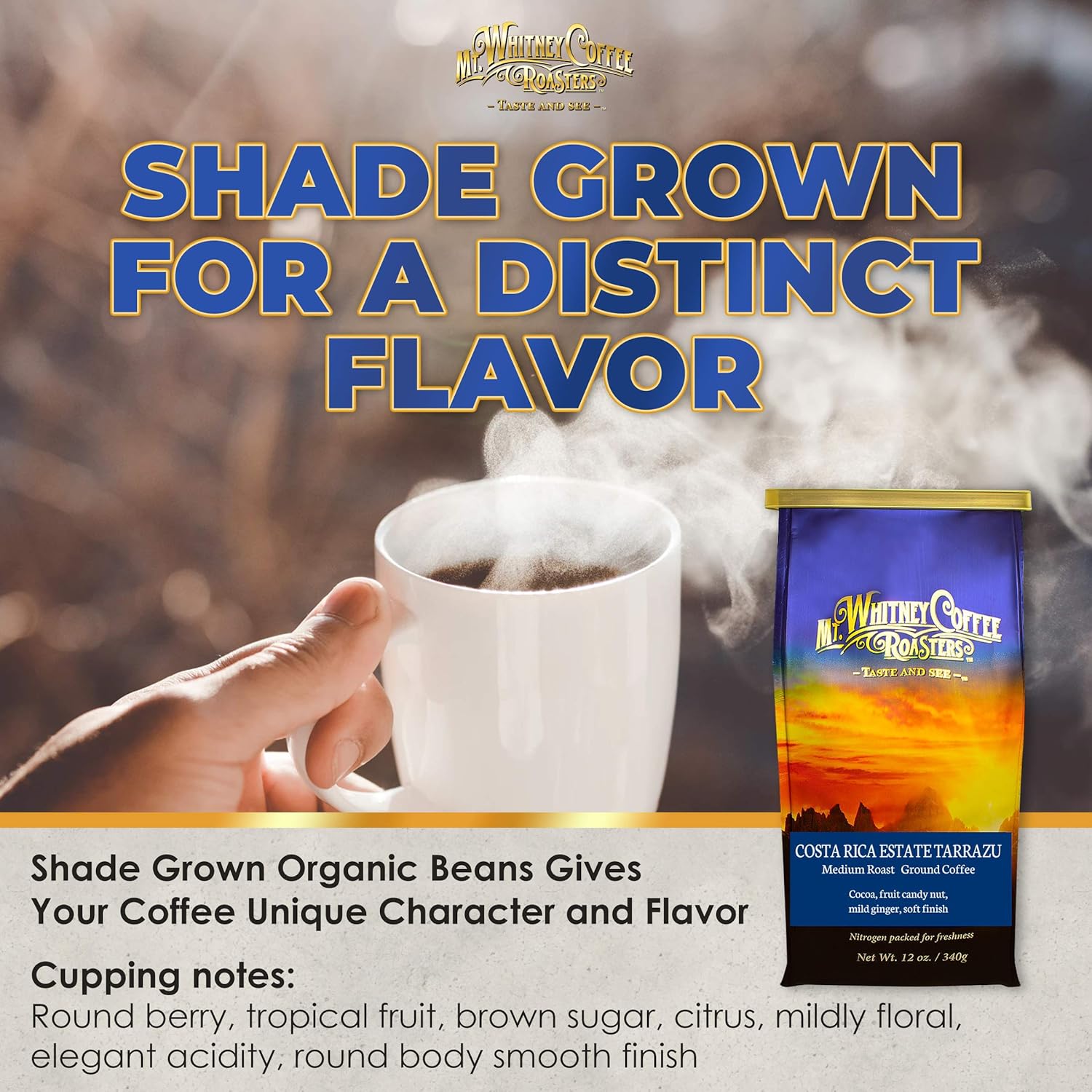 - SINGLE ORIGIN FOR SUPERIOR TASTE & QUALITY - Mt. Whitney’s Costa Rica Estate Tarrazu is a single-origin coffee, composed of a single crop. Single-origin coffees accentuate certain flavor attributes specific to a region, and are of superior taste and quality.