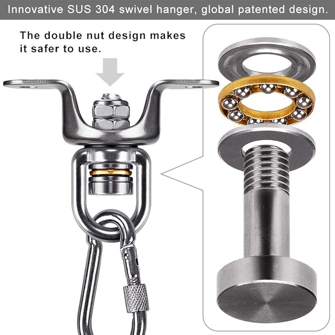 - BEARING SWIVEL:The innovative bearing design swivel offers smooth and frictionless rotation.Very Compact and Symmetrical Swivel.The large bearings we use are more load-bearing and can be used more widely