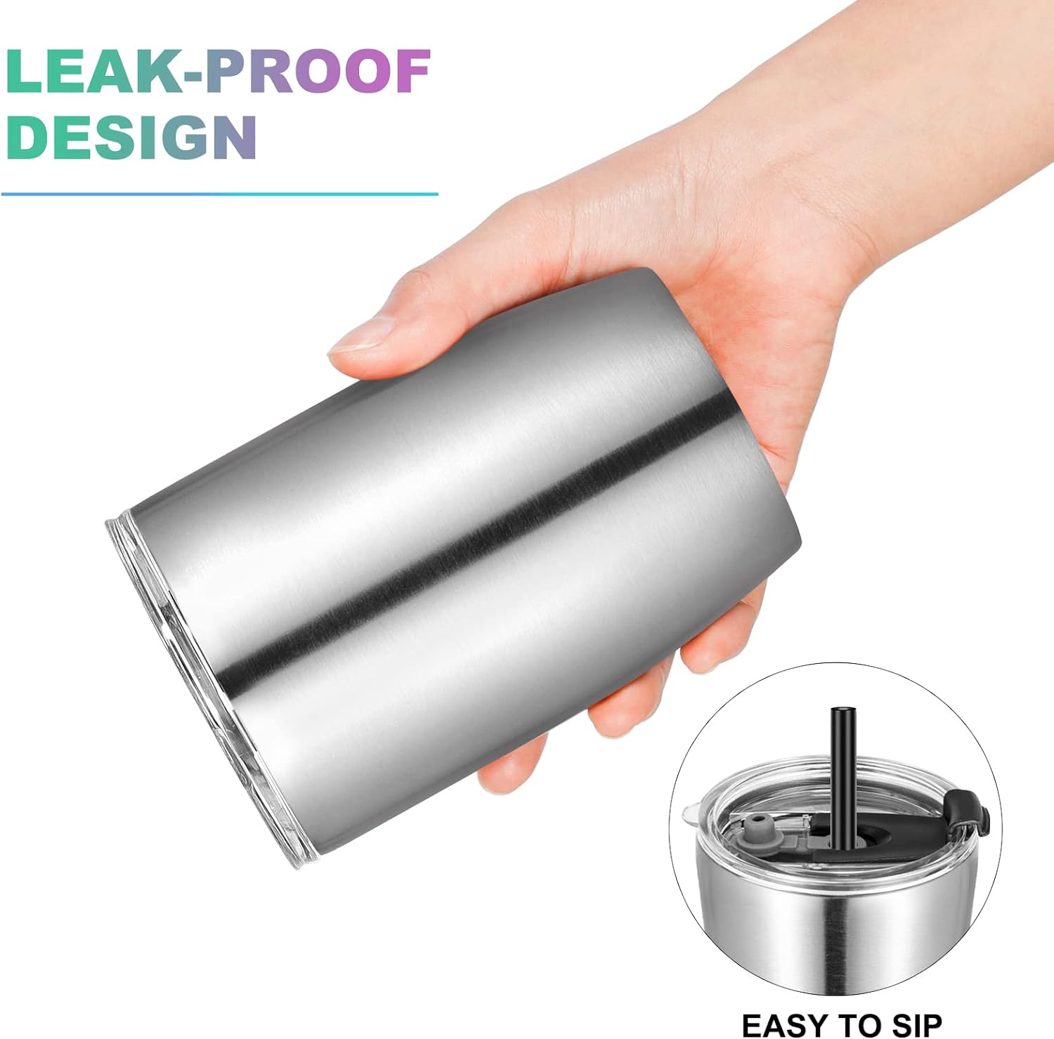 - Stainless Steel Tumblers with Lids and Straws: This 12 oz kids tumbler is made of 304 18/8 stainless steel including lid and straw. No metallic taste, Hand wash recommended