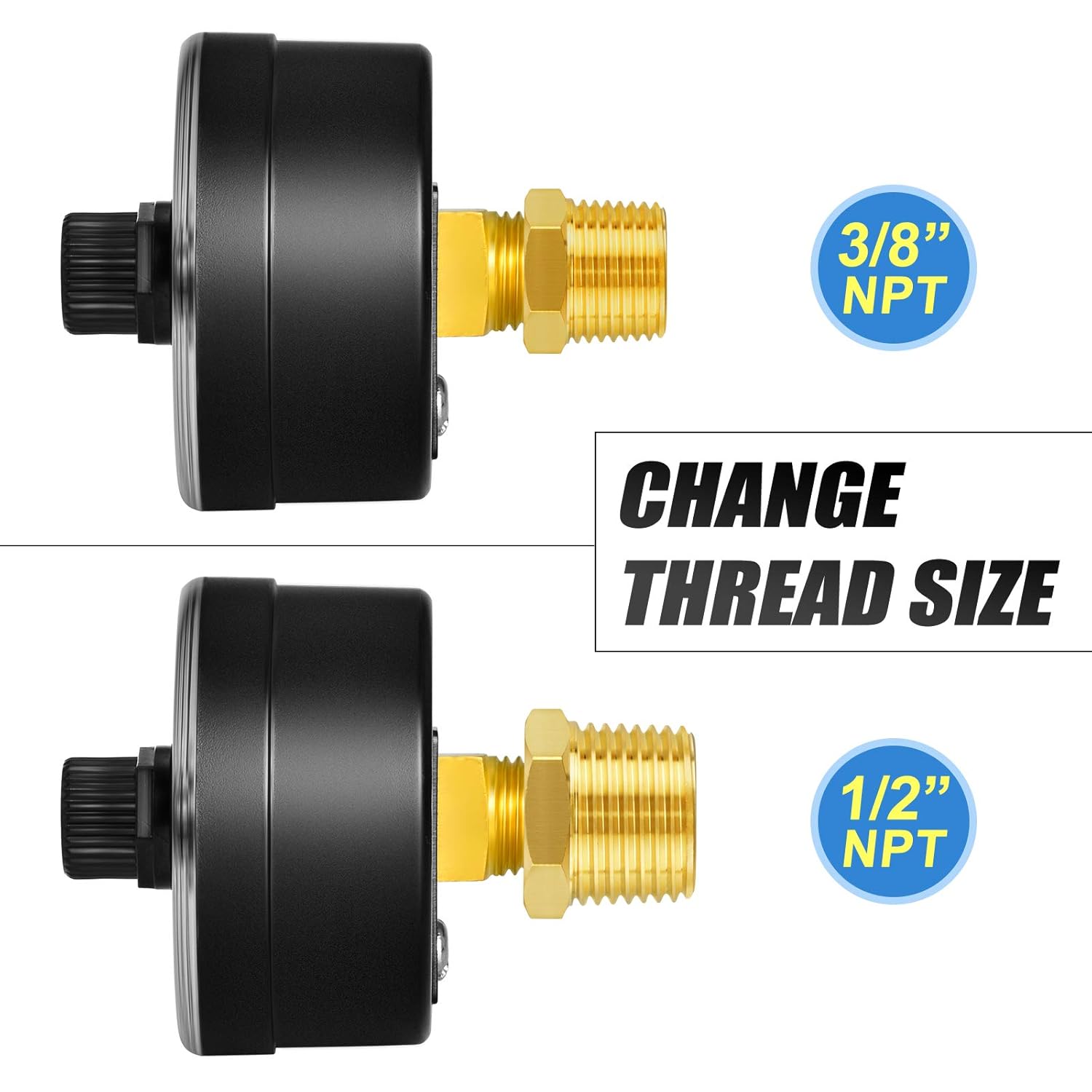 MEANLIN MEASURE 0-60Psi 1/4" NPT Pressure Gauge Box with dial for selecting Filter, 3-2-3% Accuracy, Center Back Mount, with 1/2" NPT and 3/8" NPT Hex Bushing