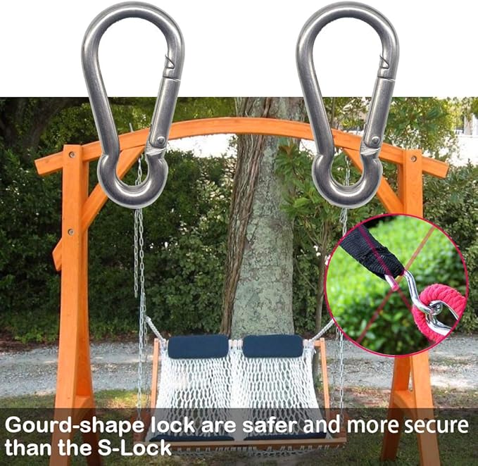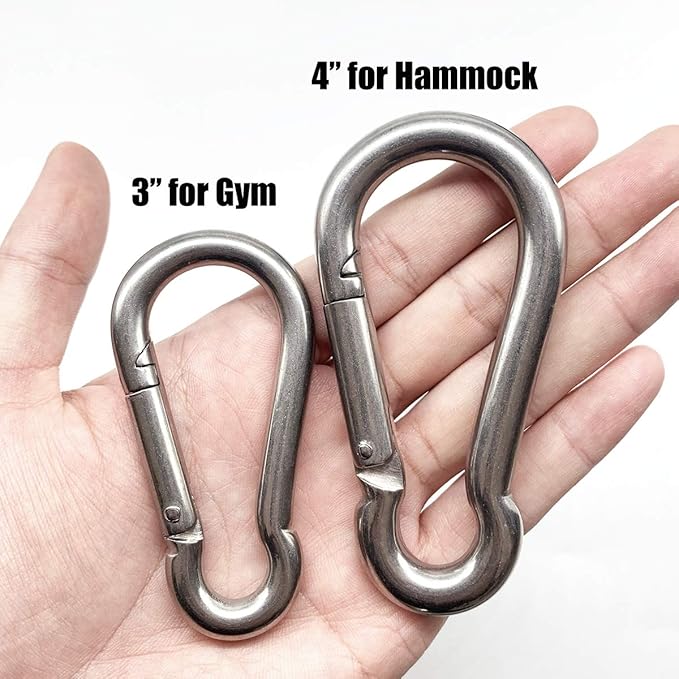 - 【Not for Hammock Only】 - These stainless steel hooks are designed not for hammock usage only, they also can be used for dog leashes, camping, fishing, traveling, backpack hiking, gym exercise and a lot more.