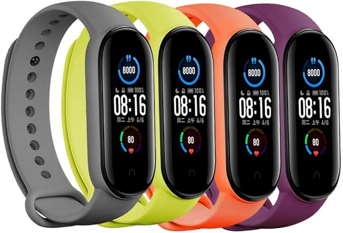(4/8 PACK) Xiaomi Mi 5 & Mi 6 Strap Replacement Bracelets for Mi Band 5 & Mi 6 SmartWatch Bands, Skin-Friendly Soft & Flexible Silicone Wristband for Male and Female