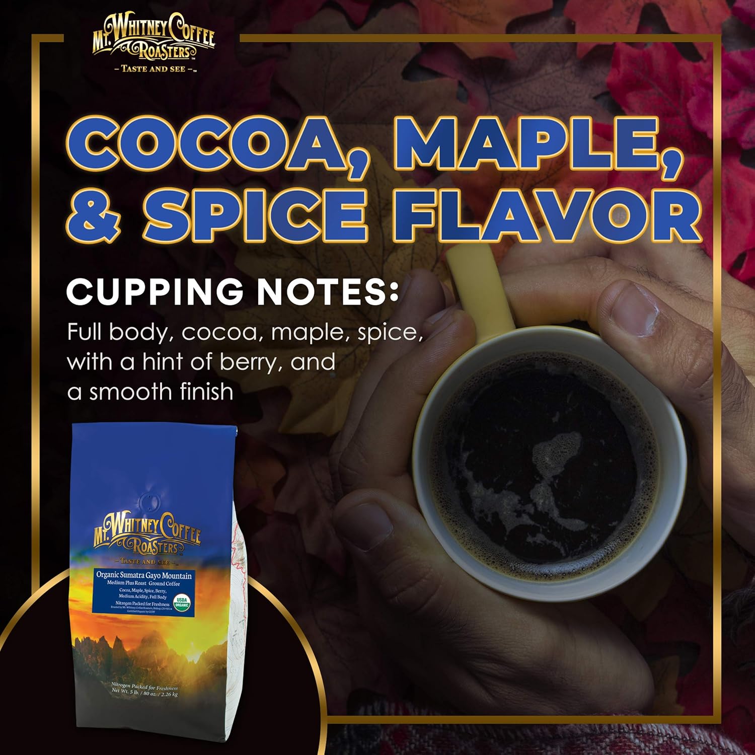 - SINGLE ORIGIN FOR SUPERIOR TASTE & QUALITY - Mt. Whitney’s Organic Sumatra Mountain Gayo is a single-origin coffee, sourced from a single country and single crop. Single-origin coffee accentuates certain flavor attributes specific to a region, and are of superior taste and quality.