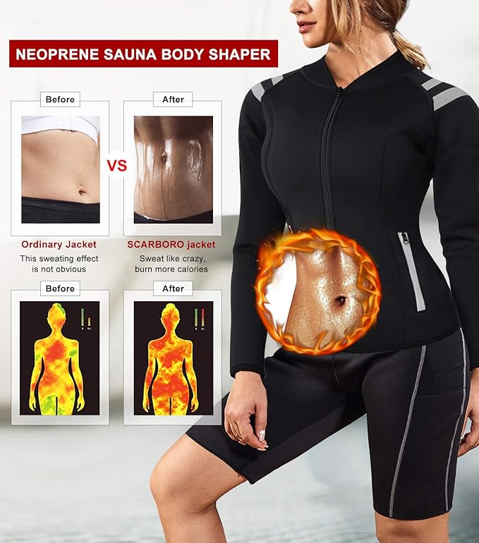 SCARBORO Sauna Sweat Suit for Women Neoprene Hot Jacket Full Body Shaper Slimming Weight Workout Top Waist Trainer Vest Shirt