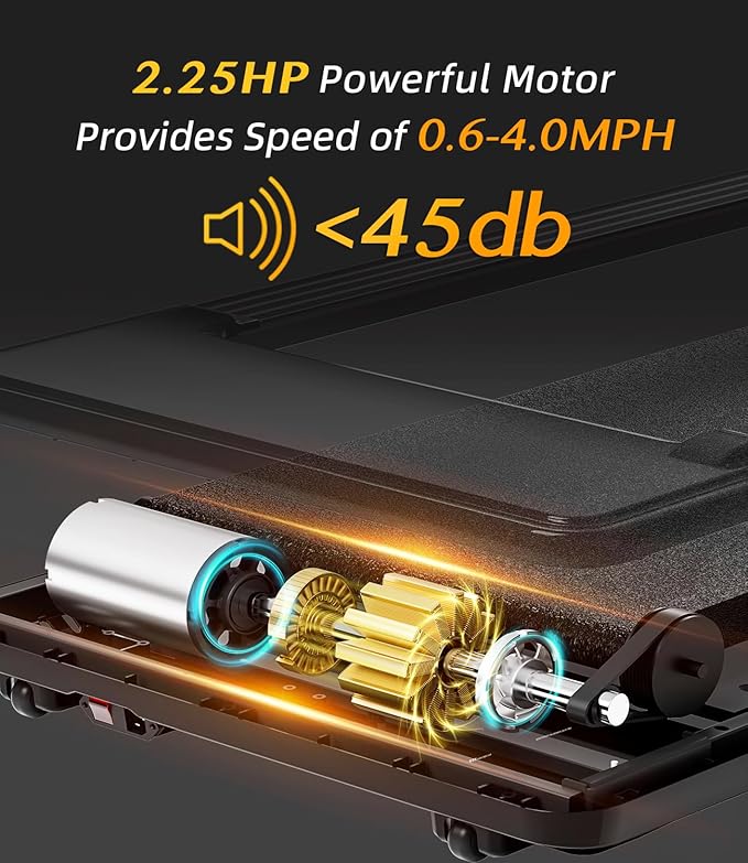 - 【2.25 HP QUIET BRUSHLESS MOTOR & SHOCK REDUCTION SYSTEM】Its powerful 2.25 HP continuous duty motor works quietly regardless of the speed and intensity of the workout. Wide speed from 0.5 – 4 mph.This makes it highly suitable for office as well as home use.5layer shock-absorbing structure anti-skid noise reduction running belt which tend to provide safe cushioning for your back, joints, knees, ankles, and muscles GTCOOCUREPTL