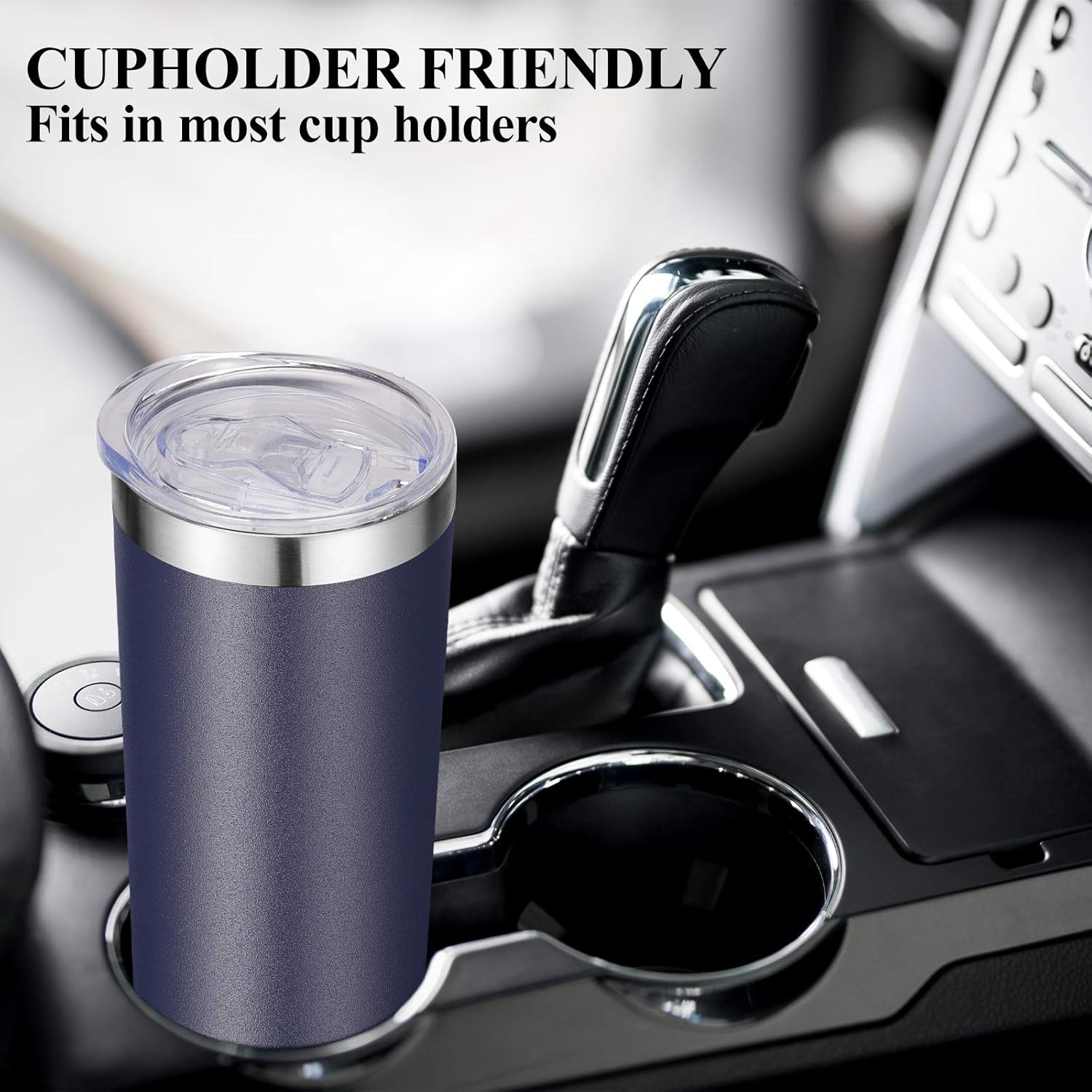 VEGOND Stainless Steel Tumblers Bulk 6 Pack, 20 oz Vacuum Insulated Skinny Tumblers with Lid and Straw, Double Wall Coffee Mug, Travel Water Cup, Navy Blue