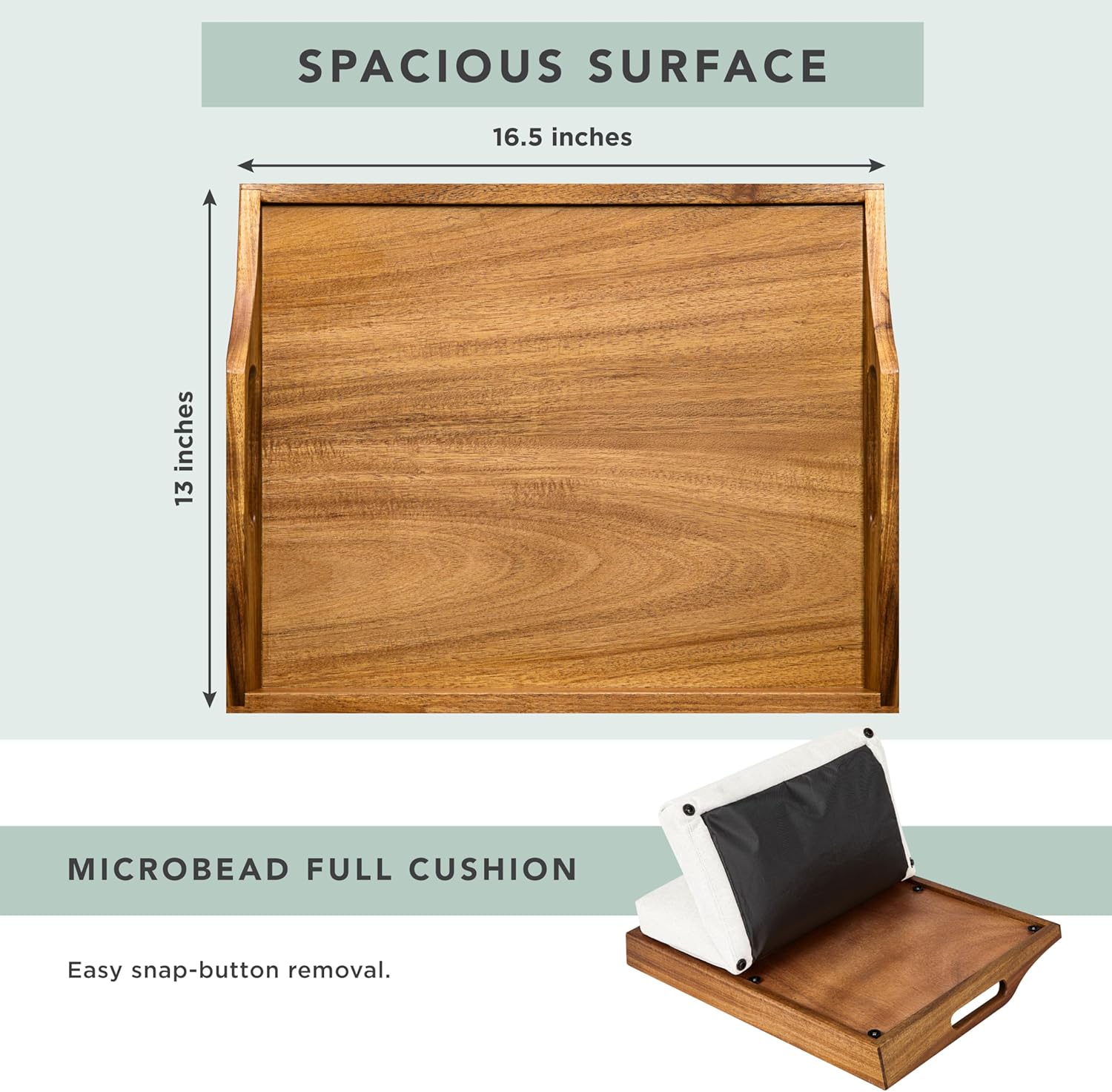 - Dual-Use Design: Use it as a lap desk with the cushion attached, or remove the cushion to convert it into a serving tray.