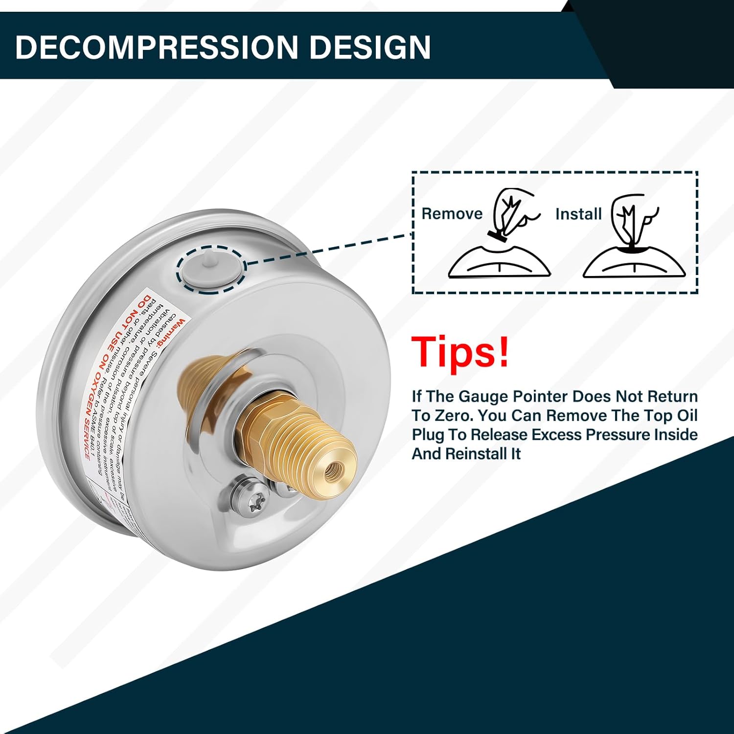 - 2-1/2" dial size, 1/4"NPT center back mount