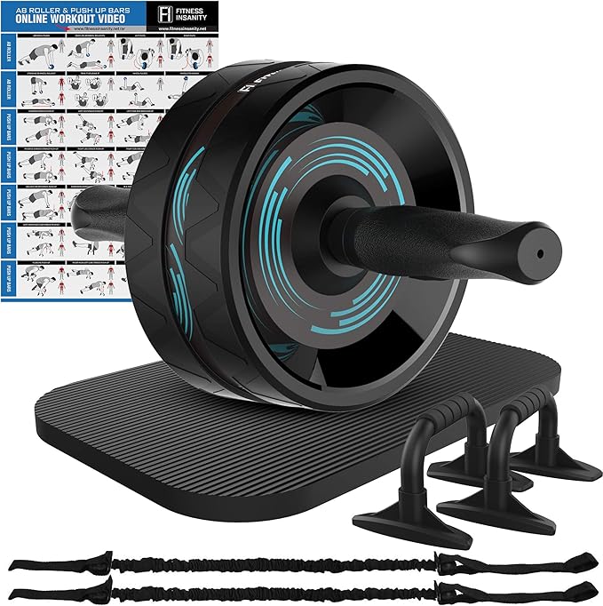 Ab Roller Wheel, 6-in-1 Ab Roller Kit with Knee Mat, Push-Up Bars, Resistance Bands, Workout Poster, Workout Guide, Perfect Home Gym Equipment for Men Women Abdominal Exercise