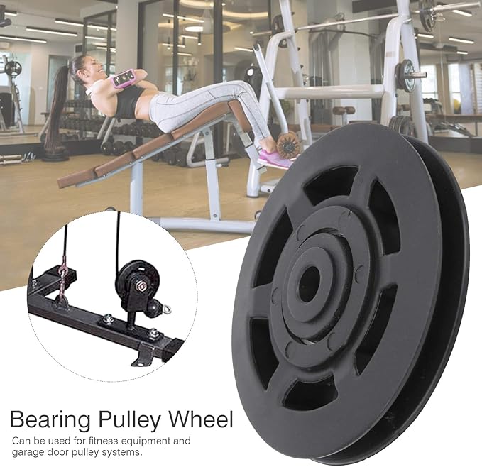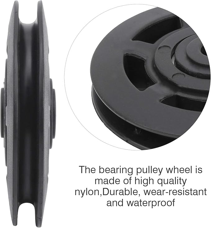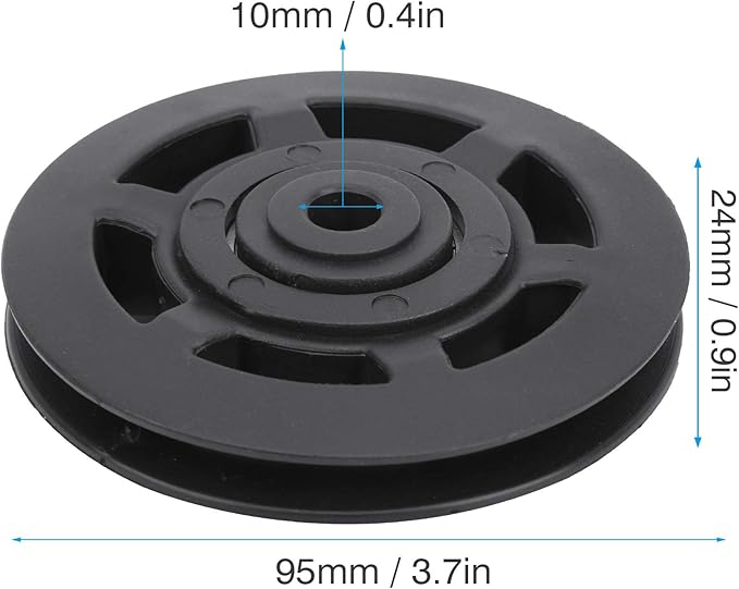- [Product Specification]: Item type: bearing pulley wheel; material: nylon; wheel outer diameter: approx. 95mm/3.7in; wheel inner diameter: approx. 10mm/0.4in; bearing thickness: approx. 24mm/0.9in; depth: approx. 10.5mm/0.4in; weight: approx. 1110.0g/39.2oz.