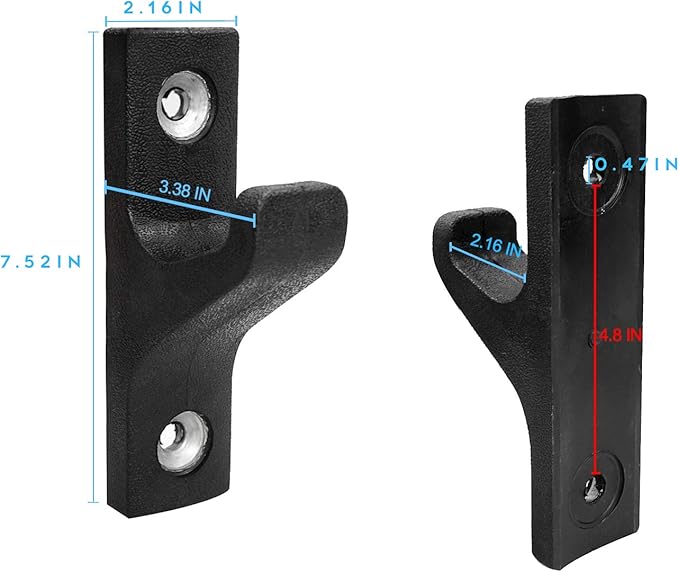 - Wall Mount Barbell Rack - Including all accessories to attach on wall, keep your bars well organized. Size 7.52L x 3.38W x 2.16H in, notch width 2.16 in, screw hole diameter 0.47 in, distance between 2 holes 4.8 in, 1 pair weight 60.81 oz