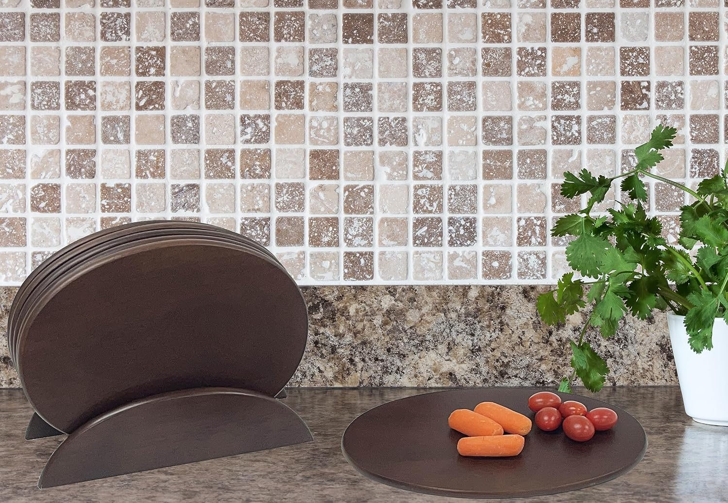 Woodard & Charles 6 Piece Wood Boards with Stand, Perfect for Serving, Sushi, Cheese, Hors D'Oeuvre, Charcuterie, Sandwiches, 7 Piece Set, 9 1/2" x 6 1/2" (Walnut)