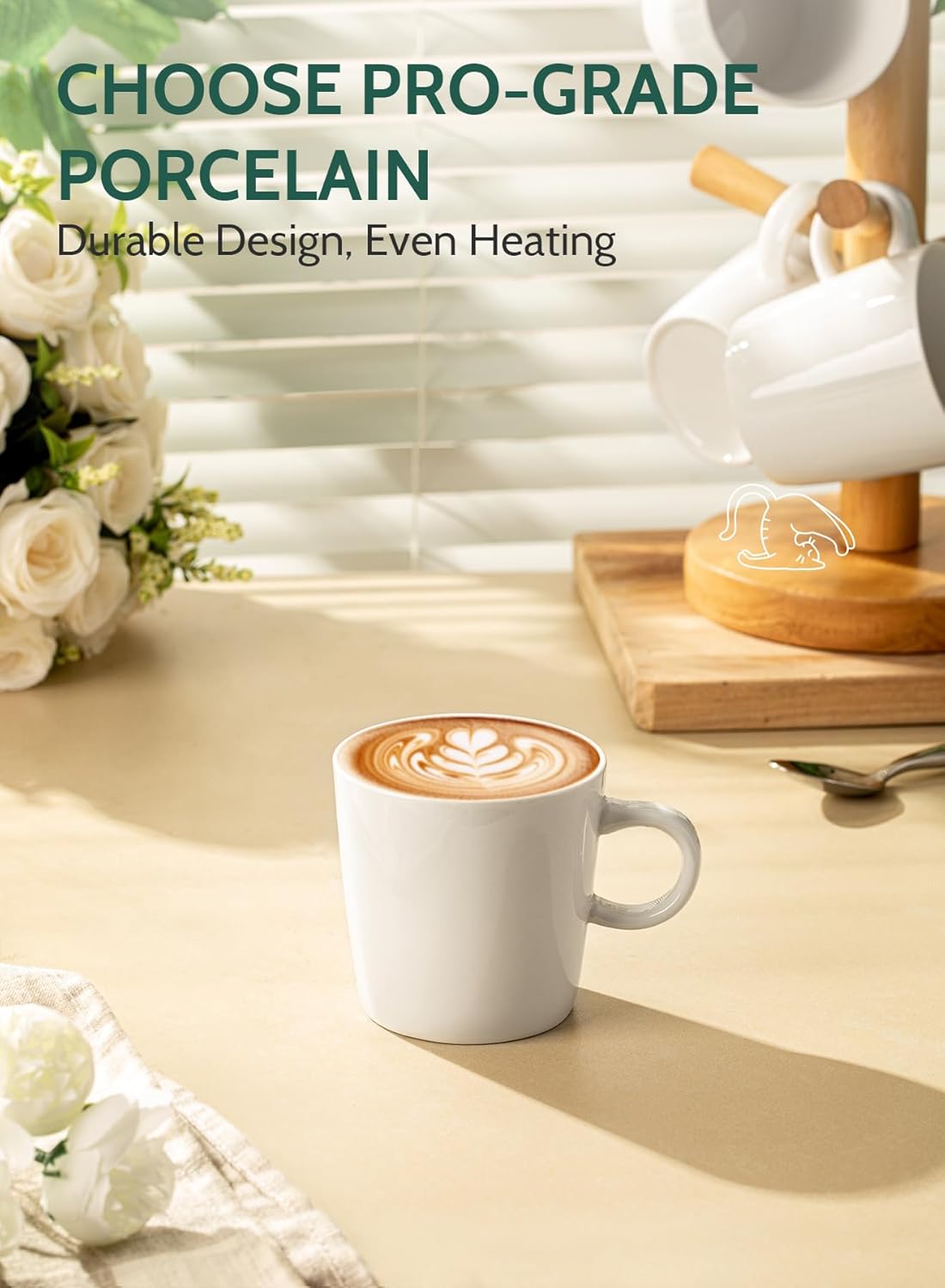 Sweese 5oz Porcelain Espresso Cups Set of 4, Mini Coffee Mugs Demitasse Cups - White