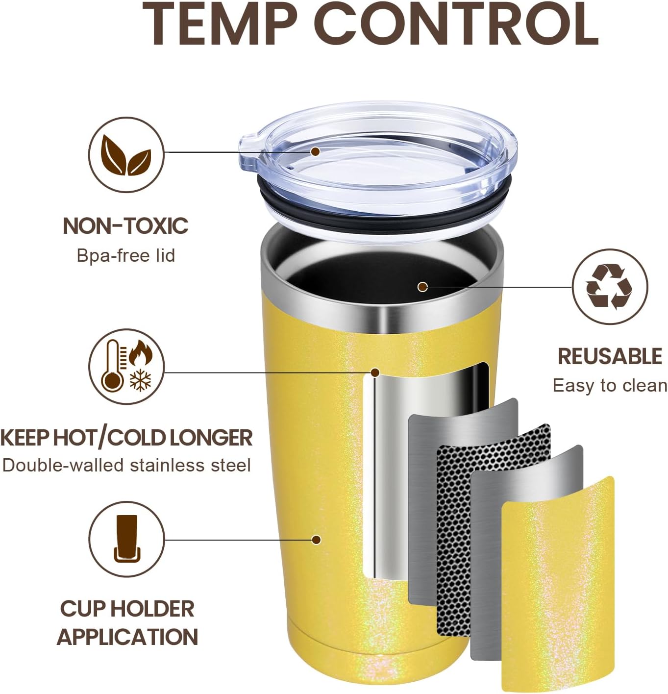 - [Package included]1*20 oz glitter tumbler,1*splash proof cover with hole, 1*bent stainless steel straw,1*straw brush