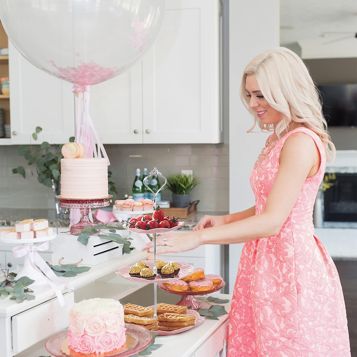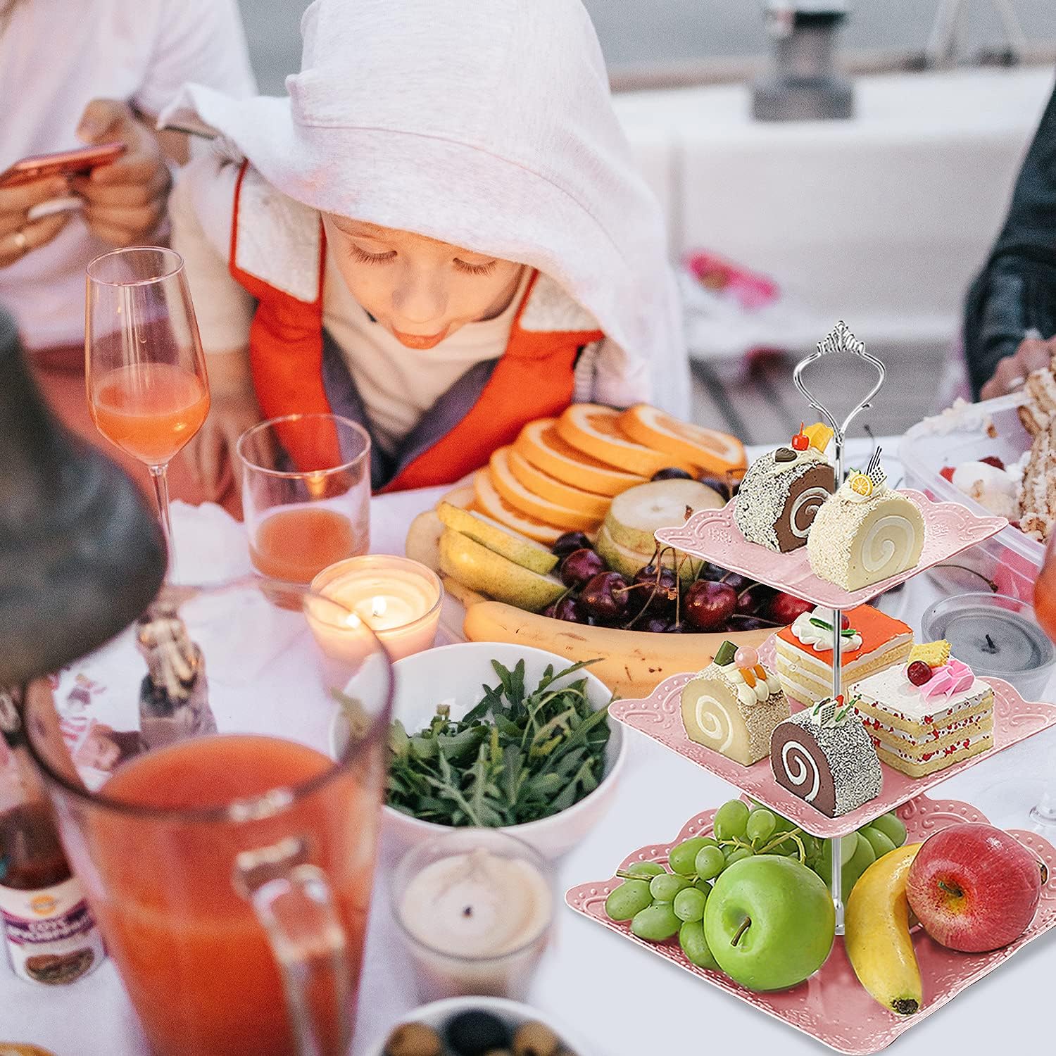 Cupcake Stand,2 Set of 3-Tier Dessert Plates Mini Cakes Fruit Candy Display Tower Cookie Tray Rack Candy Buffet Holder Plastic Cake Stand for Wedding Home Holiday Birthday Christmas Party Decor (Pink)