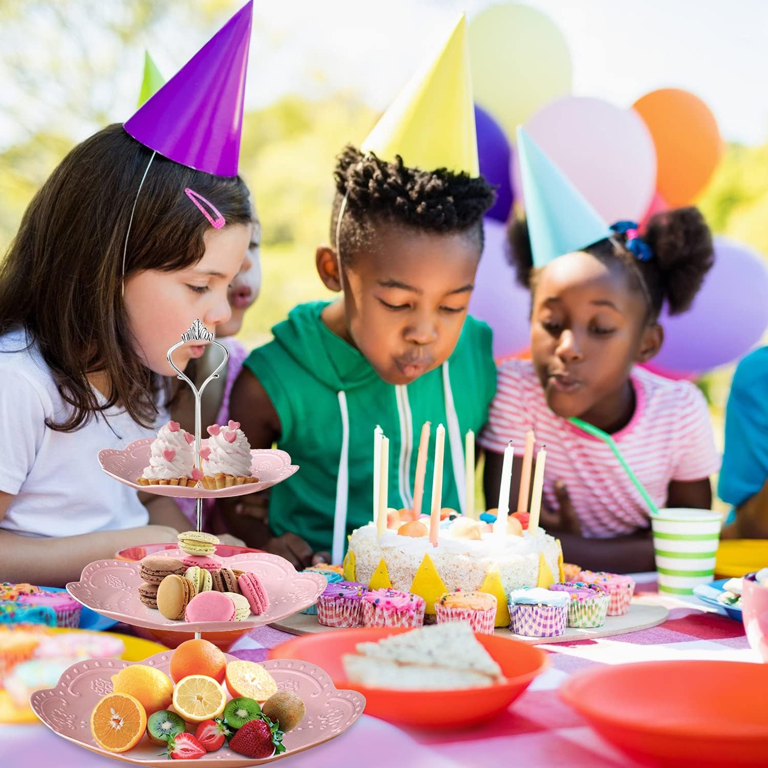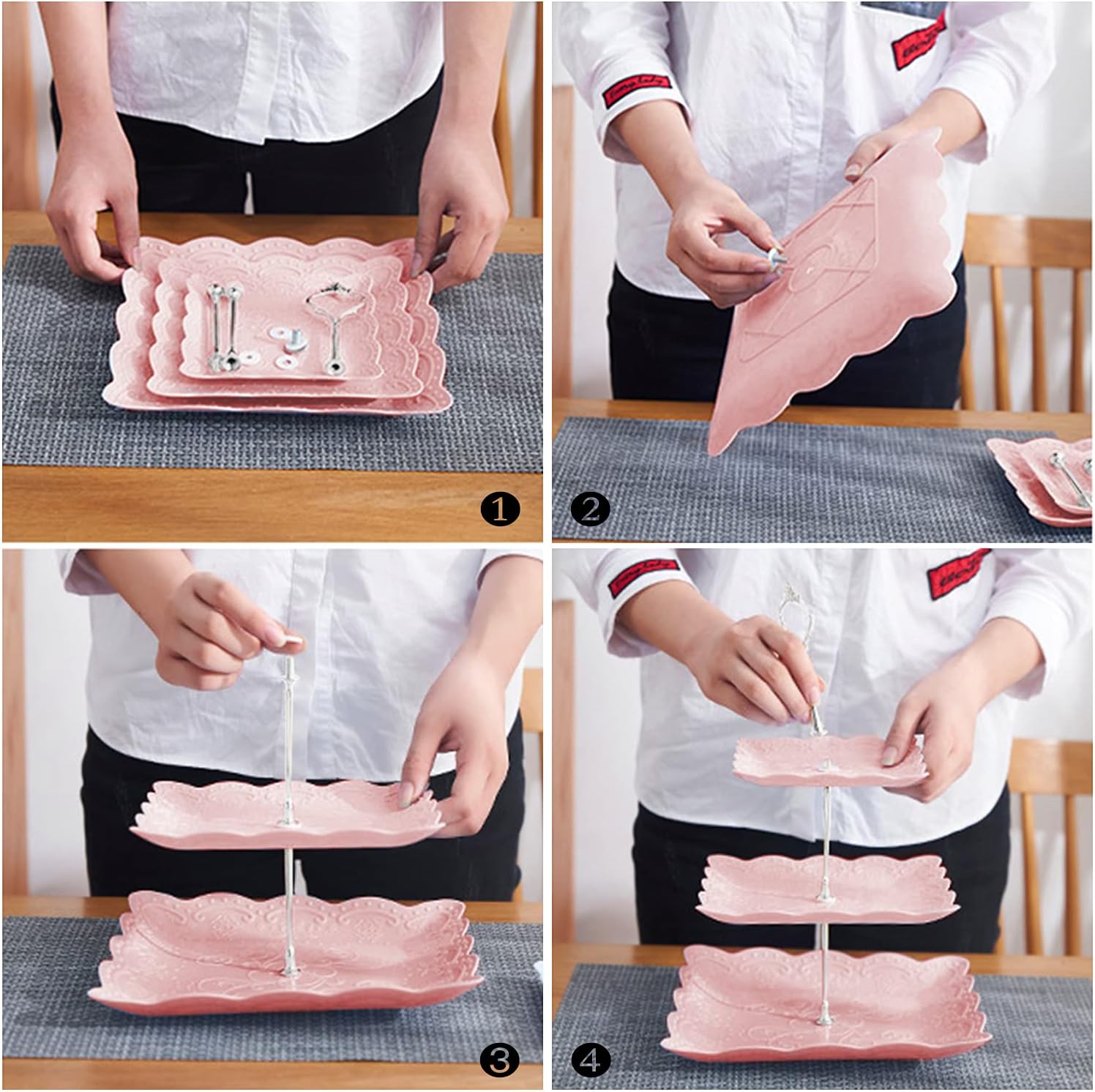 - Reusable & Sturdy: The 3-Tier plastic cupcake stand dessert plates are made of highly plastic which is food grade and environmental protection.Not easy to be crooked after assembled.Will stay and hold food firmly