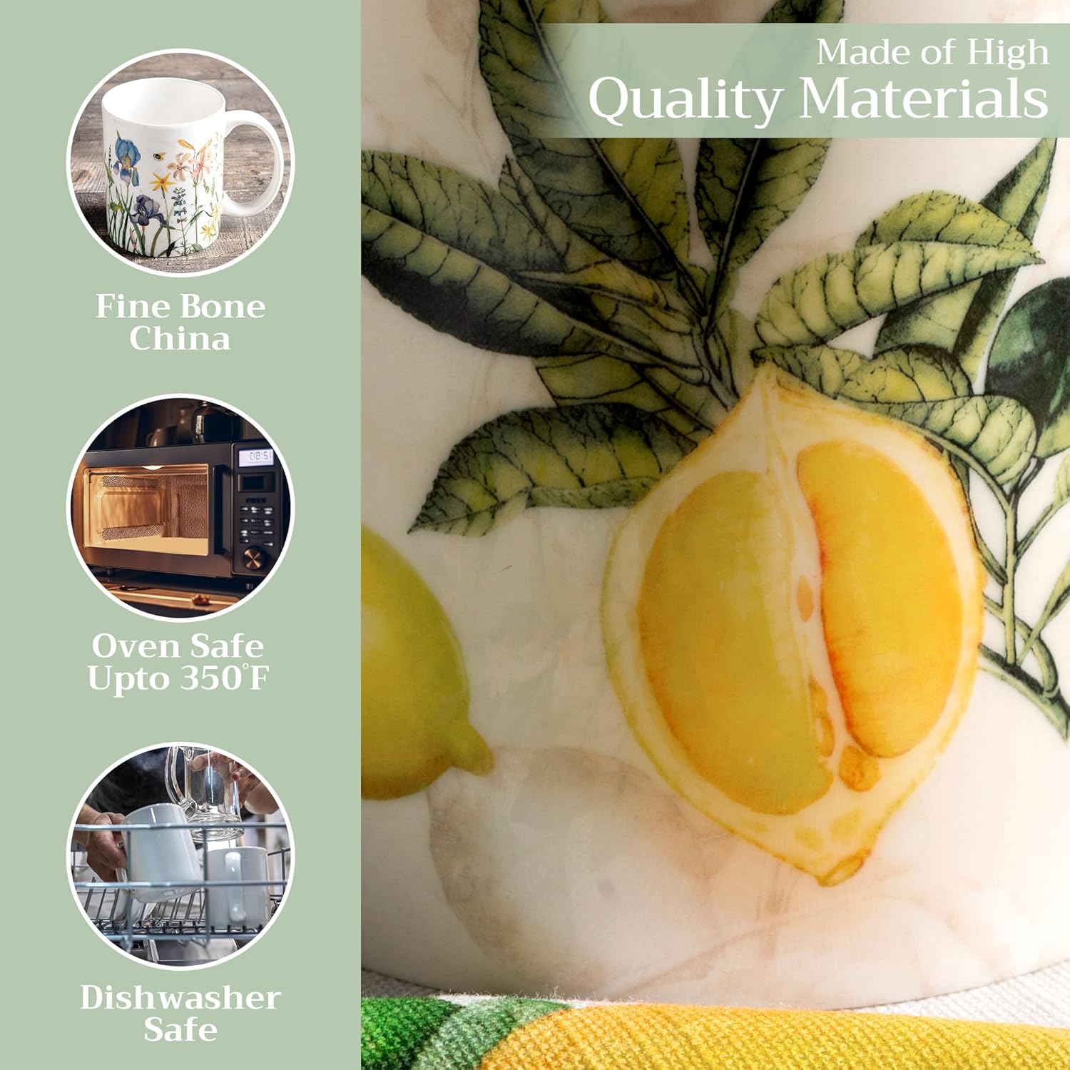 Maison d' Hermine Coffee Mug with Handles Fine Bone China Mugs Pack of Two Tea Cups for Hot Beverages Cappuccino Latte Home Restaurant Office Perfect for Gift (Limoncello, 12 Ounce)