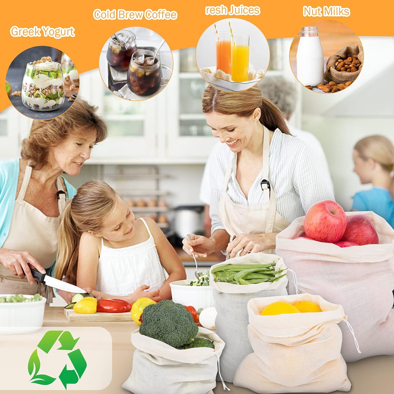 - 【DRAWSTRING DESIGN & EASY TO USE】These cheesecloth bags are designed with the optimal size (12" x 14") for making nut milk, with a drawstring are very convenient to straining and squzeeing, prevent pulp overflowing out. The cloth is durable and tear-resistant. They are all washable and can be reused again and again. Sewn-in the top of the bag is a drawstring that can be pulled to tighten and close the bag. Ensure each bag is washed prior to first-time use.