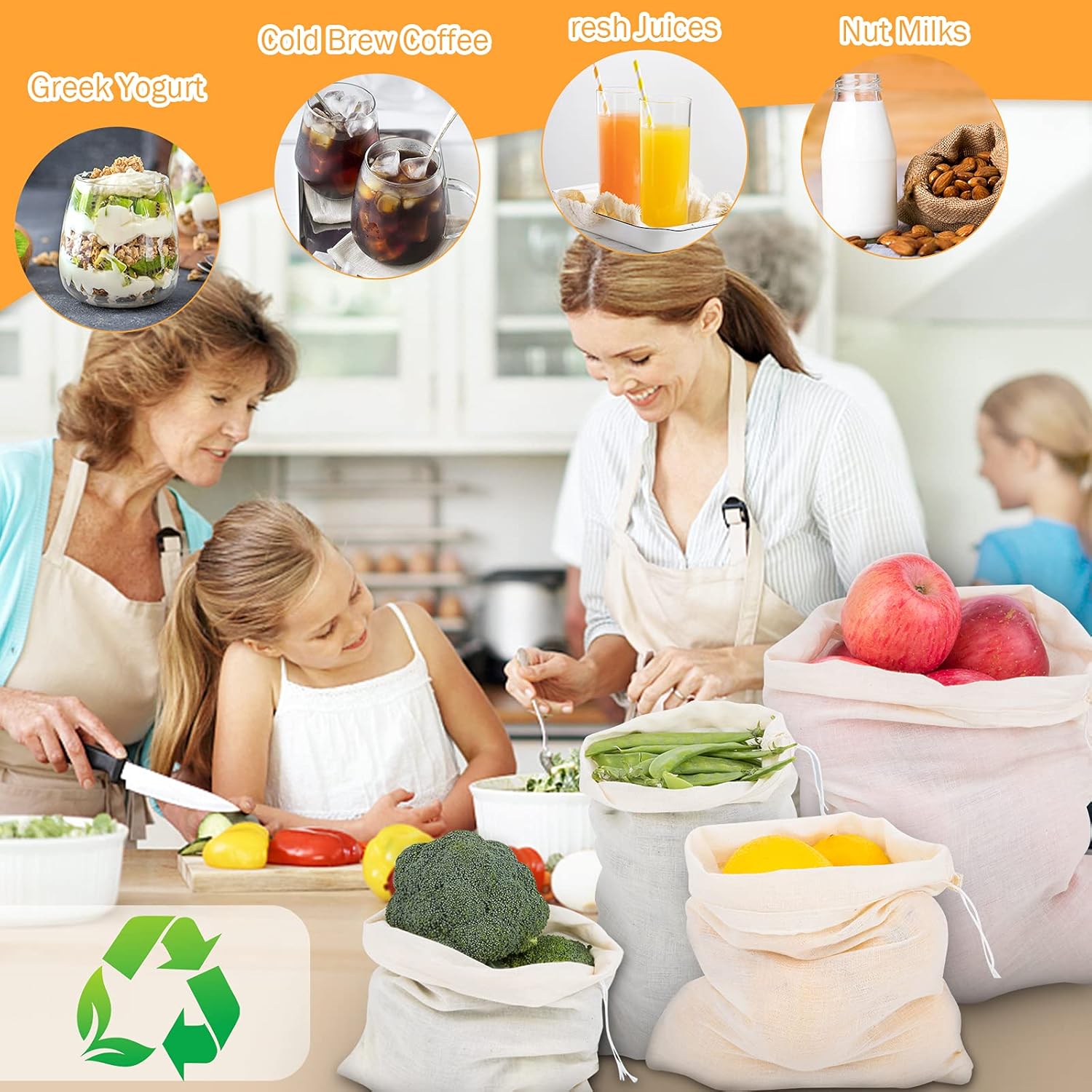 - 【DRAWSTRING DESIGN & EASY TO USE】These cheesecloth bags are designed with the optimal size (8" x 10") for making nut milk, with a drawstring are very convenient to straining and squzeeing, prevent pulp overflowing out. The cloth is durable and tear-resistant. They are all washable and can be reused again and again. Sewn-in the top of the bag is a drawstring that can be pulled to tighten and close the bag. Ensure each bag is washed prior to first-time use.