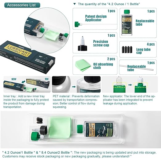 - 4.2 Ounce / 1 Bottle-Includes : 1 Bottle of Silicone treadmill belt lubricant (≥ 4.2oz) + 1 Hard application tube (easy to apply) + 1 Replacement application tube (choice) + 1 Precision screw cap (control the flow of silicone oil) + 2 Pcs of Oil absorption cloth (can be wiped if the operation is wrong) + 1 Sealing cap (long-term storage)