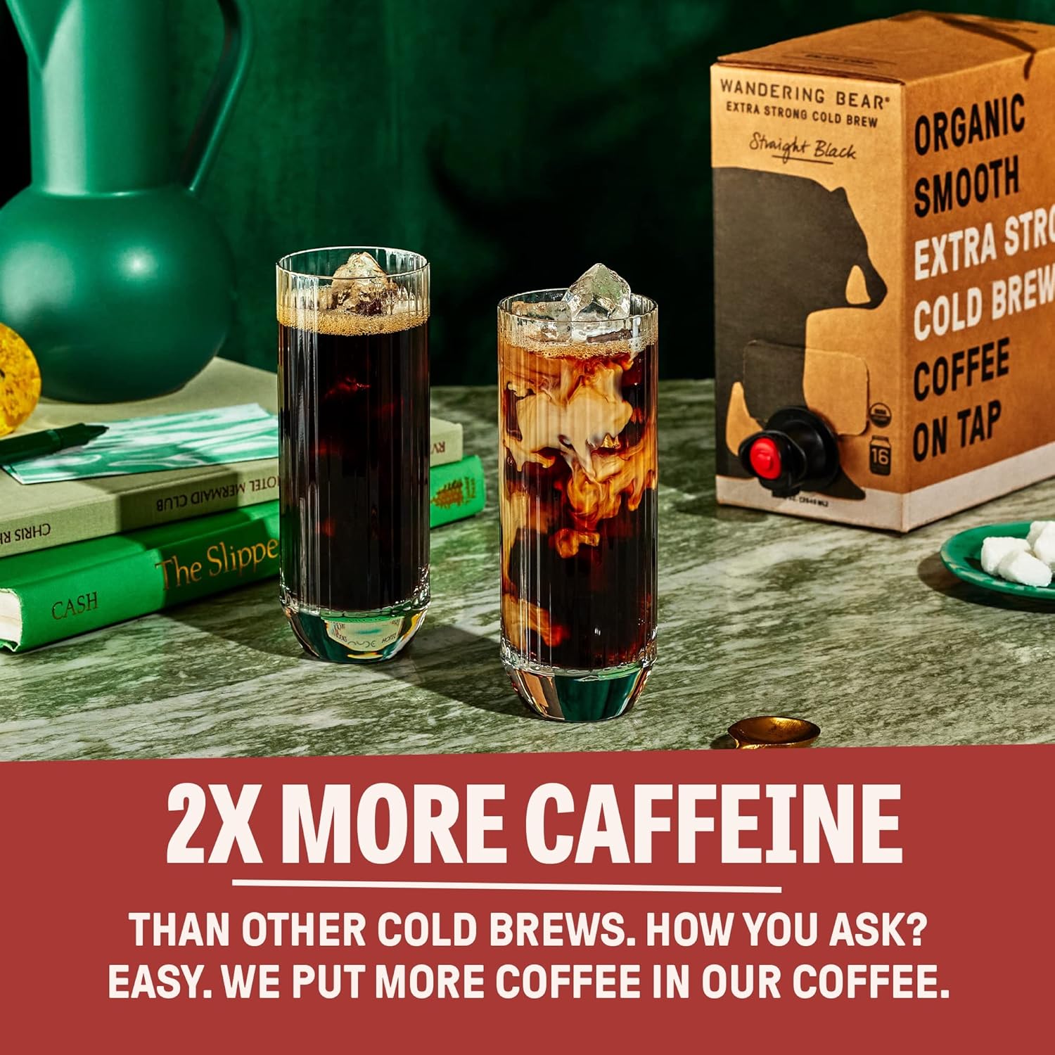 - EXTRA-STRONG CAFFEINE KICK - Each 6oz serving of this organic cold brew coffee packs 150mg of caffeine, delivering the strength of two espresso shots. Whether you need a morning boost or an afternoon pick-me-up, this bold coffee cold brew keeps you energized.