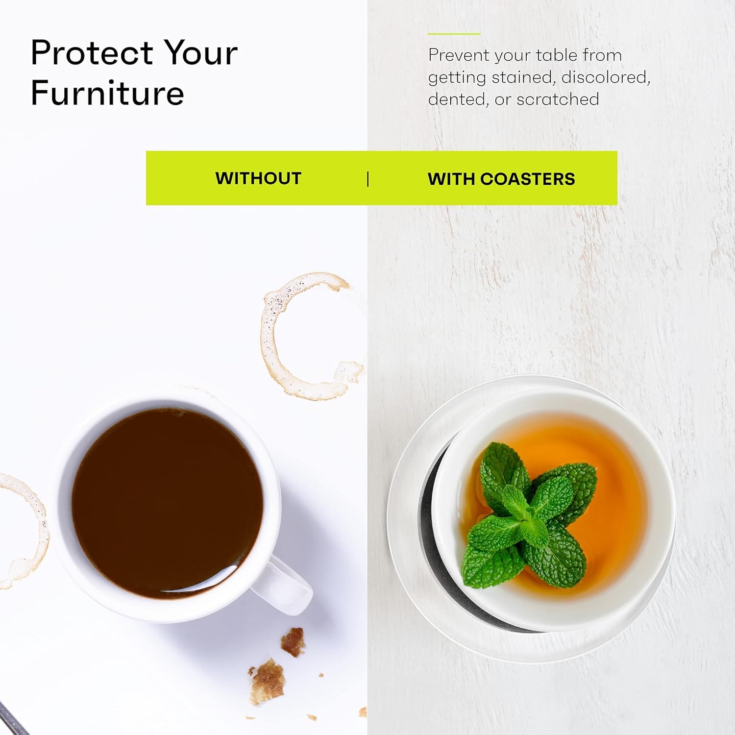 Acrylic Drink Coasters Set of 6 | Premium Stylish Black 4 Inch Coaster Set for Tabletop, Coffee Table Protection | Coasters Will Not Scratch Your Wood Tables or Stick to Glass | Home Decor Accent