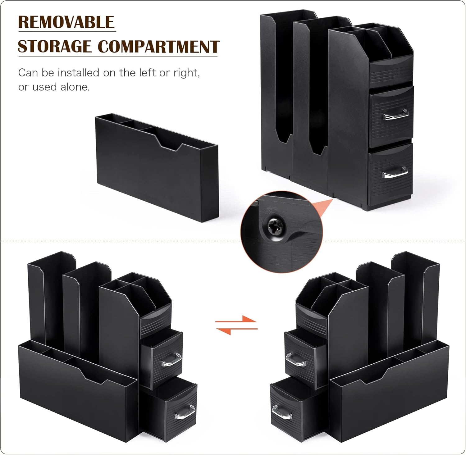 - Multi-purpose Organizer: This coffee station condiment organizer is wonderful for home kitchen, office break-room,waiting rooms, hotel lobby and more. Side compartment is detachable and can be changed to another side.