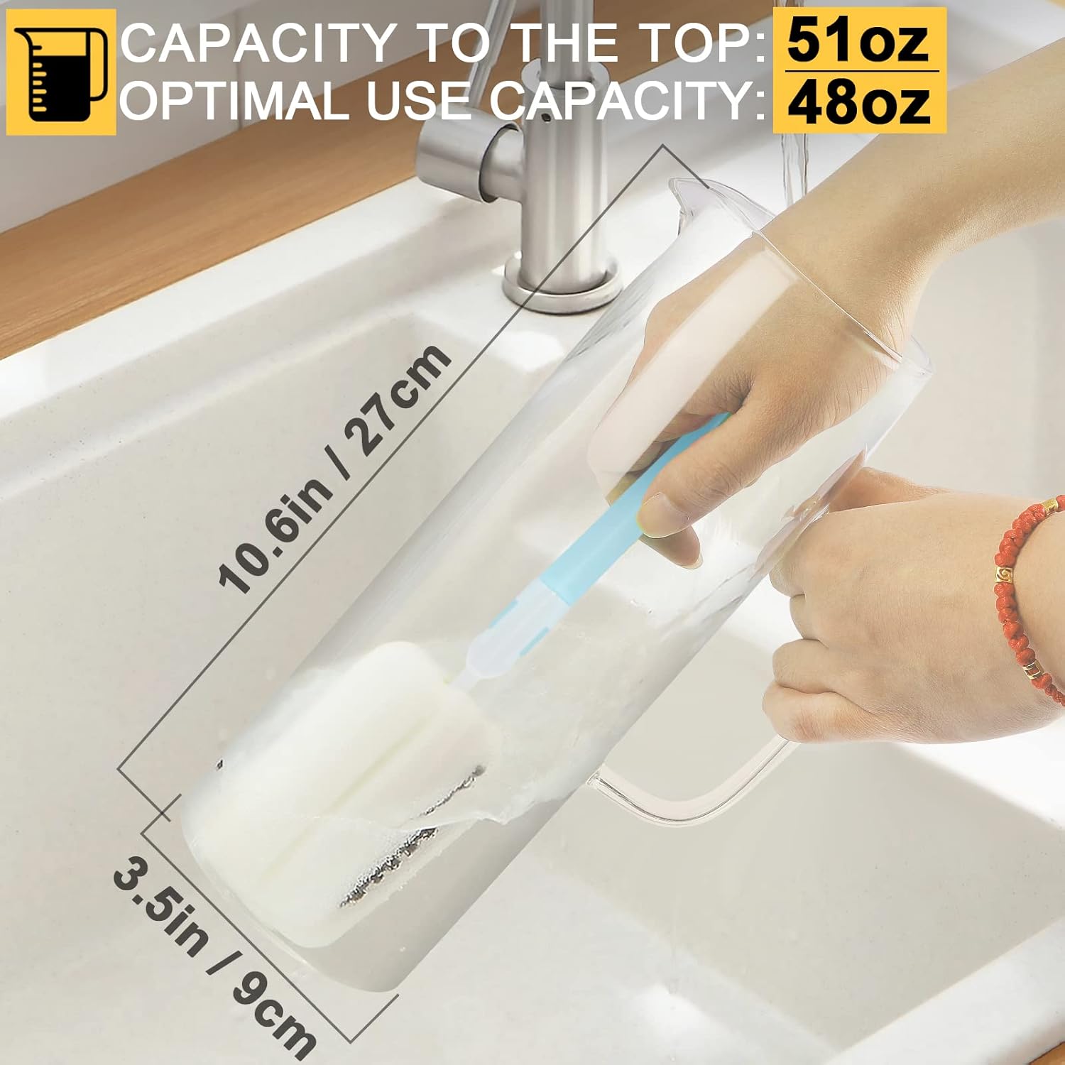 Yirilan Glass Pitcher, 1.5liter Glass Pitcher With Lid, Carafes and Pitchers, Iced Tea Pitcher, Water Carafe With Handle, Heat Resistant Borosilicate Glass Jug, Beverage Pitcher, Tea Jug With Brush