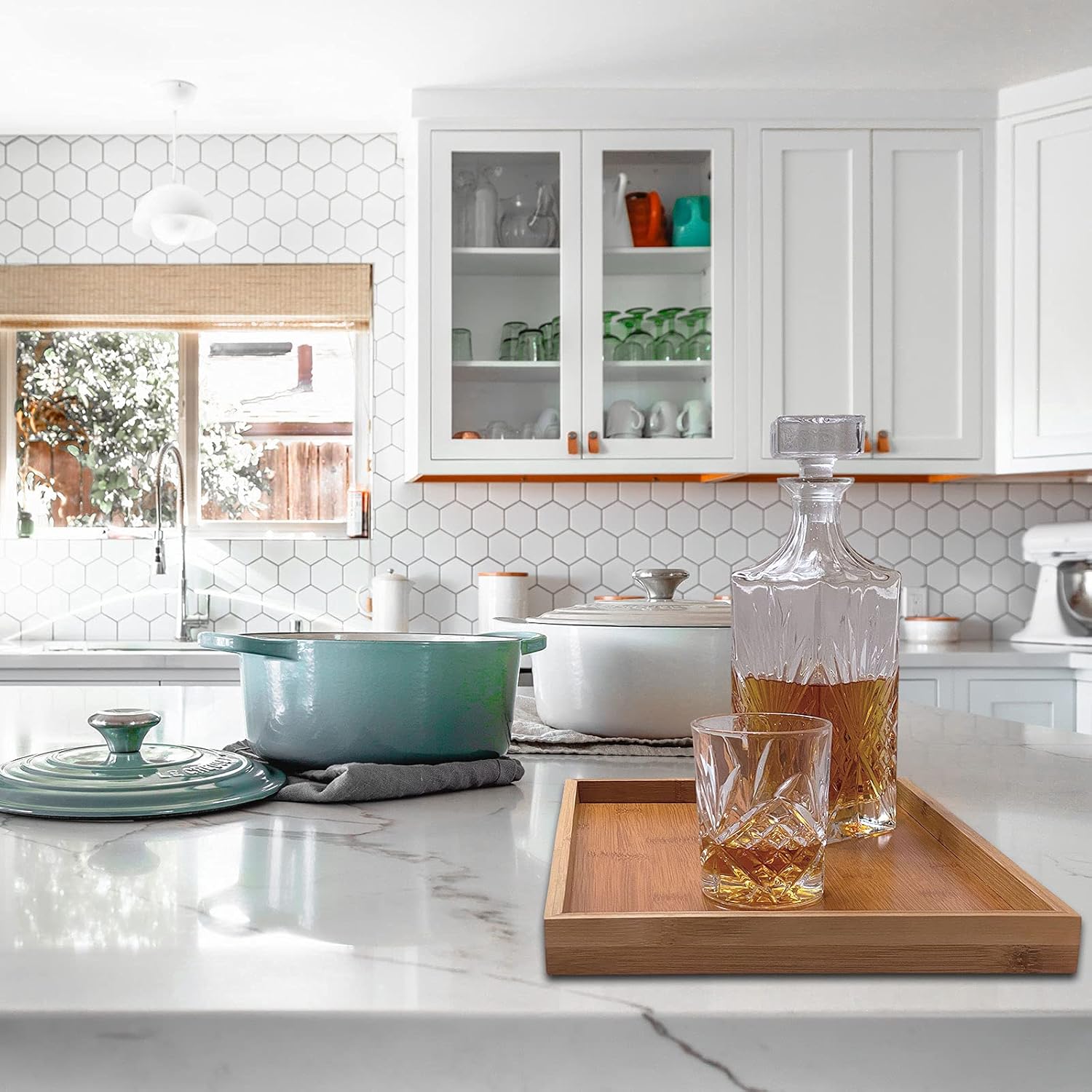 Bam & Boo - Natural Bamboo Serving Tray Modern Rectangular - for Food, Drinks, Decor, Vanity in Home, Kitchen, Bathroom, Coffee Table, Bed(Large, 13.75” x 10.25" x 1.2")