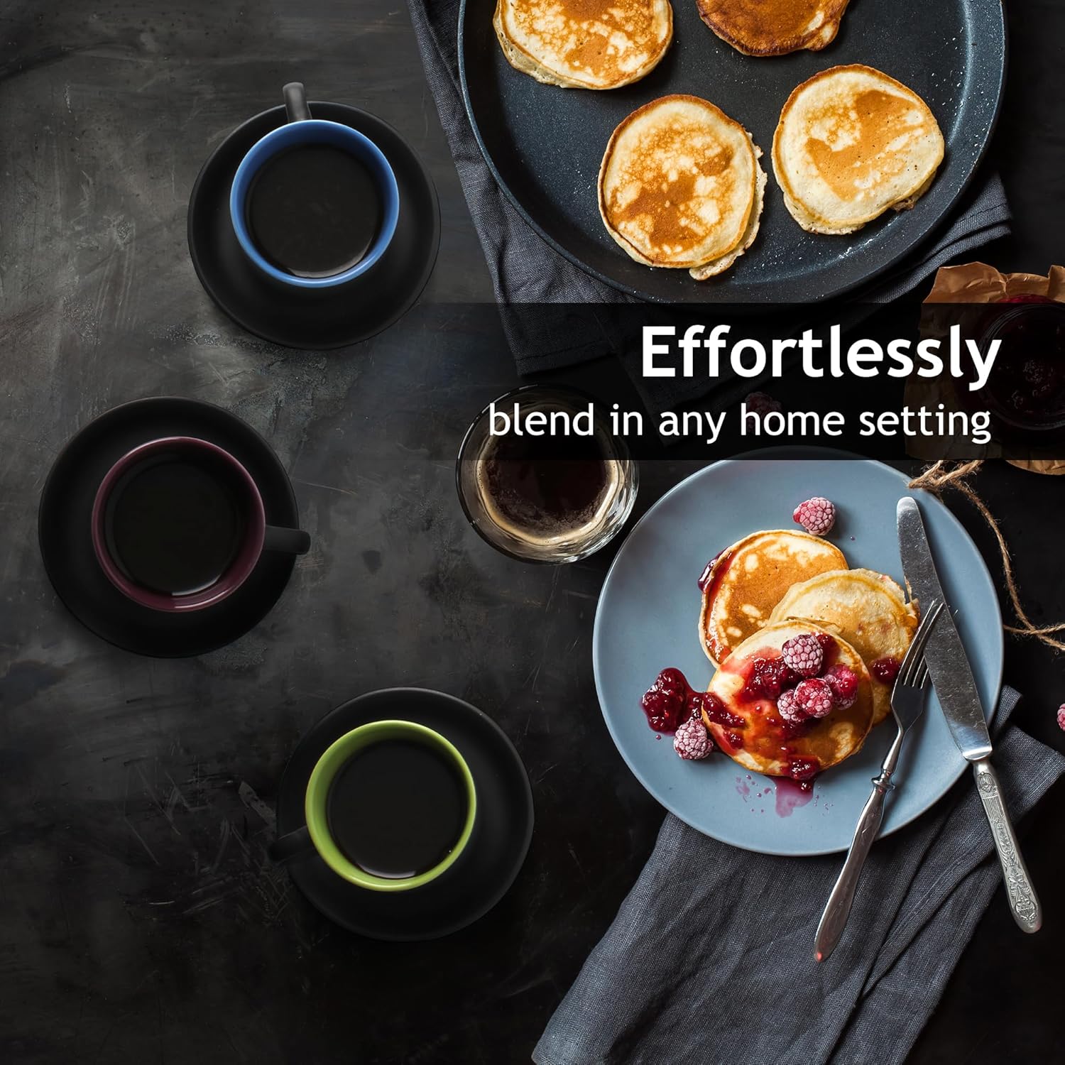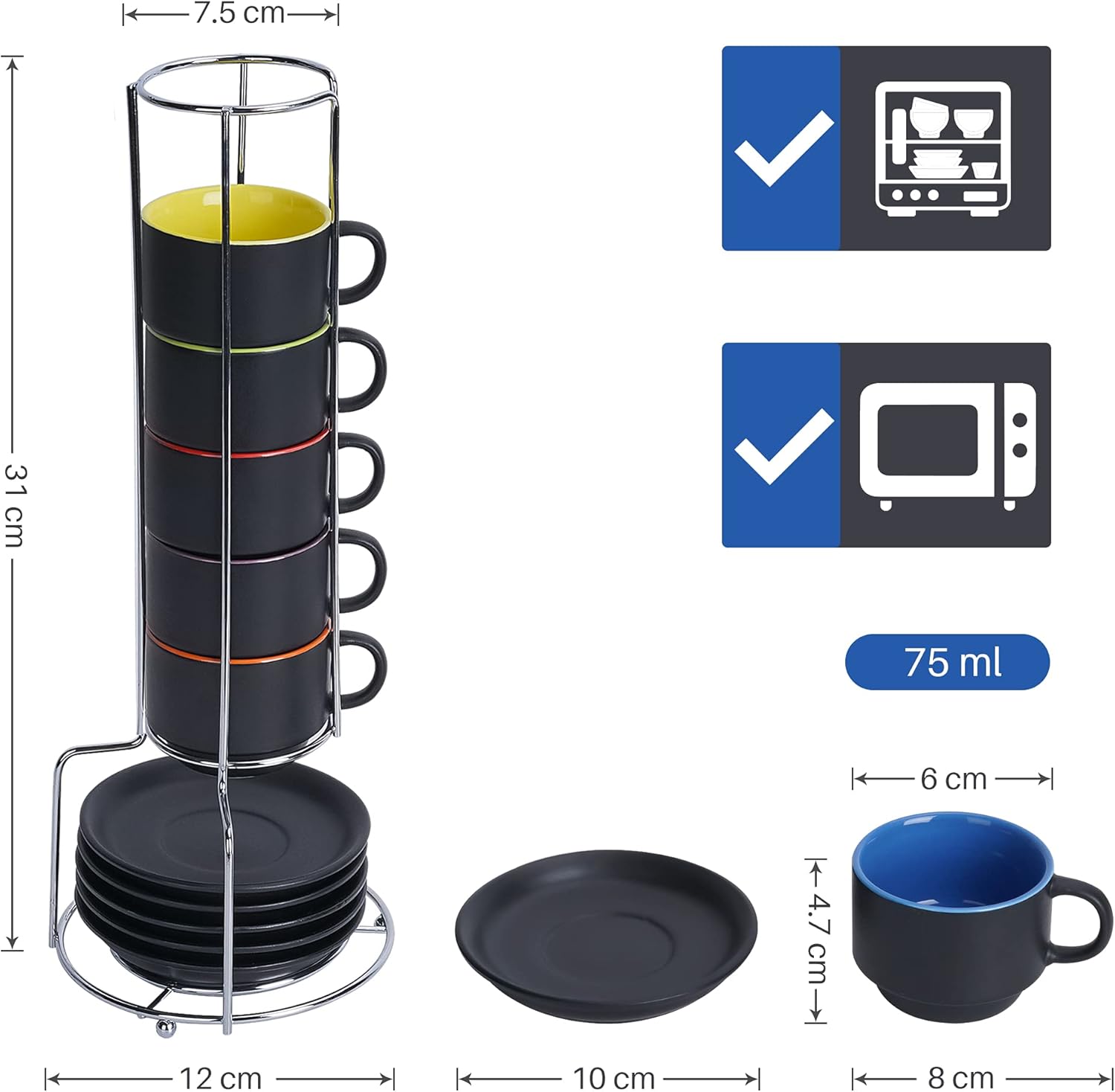 - Compact & Stackable: Save space with our 6-piece set, featuring stackable espresso cups and saucers that fit neatly in your cabinet