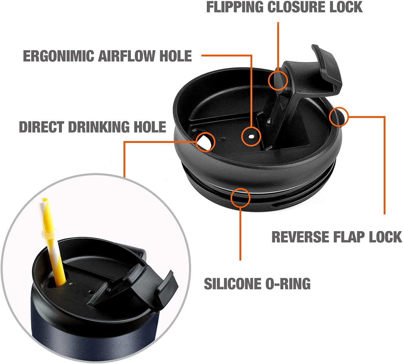 - Double Wall Insulation: The travel mug features double-wall insulation to ensure that your drink stays cold or hot for twenty-four and six hours, respectively. With the vacuum-insulated design, the bottle will not form condensation on the outside, reducing the potential to damage electronics