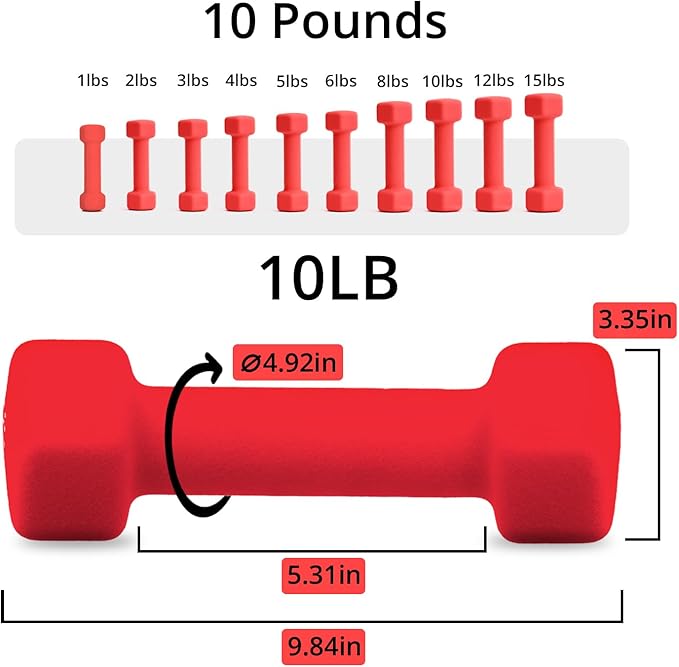 Portzon Weights Dumbbells 10 Colors Options Compatible with Set of 2 Neoprene Dumbbells Set,1-15 LB, Anti-Slip, Anti-roll, Hex Shape for Shoulder,Neck, and Hand Training for Seniors