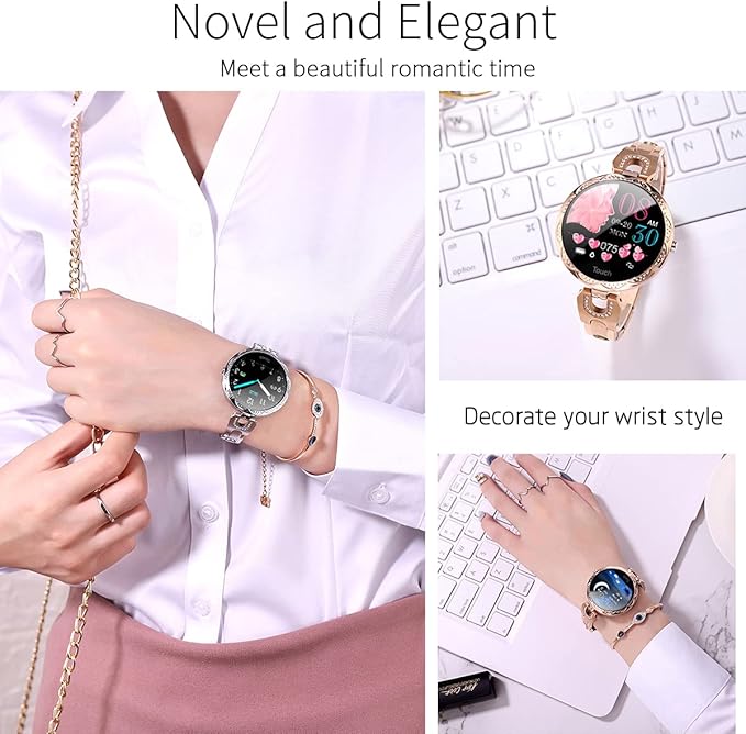 - 👗【Stylish Women's Smartwatches】Smartwatch is specially designed for women, with spherical tempered glass, a small strap, and a thin body, it has two colors, suitable for all kinds of clothes, and also has exclusive female functions, built-in menstrual function reminders, gives you insight about your health.