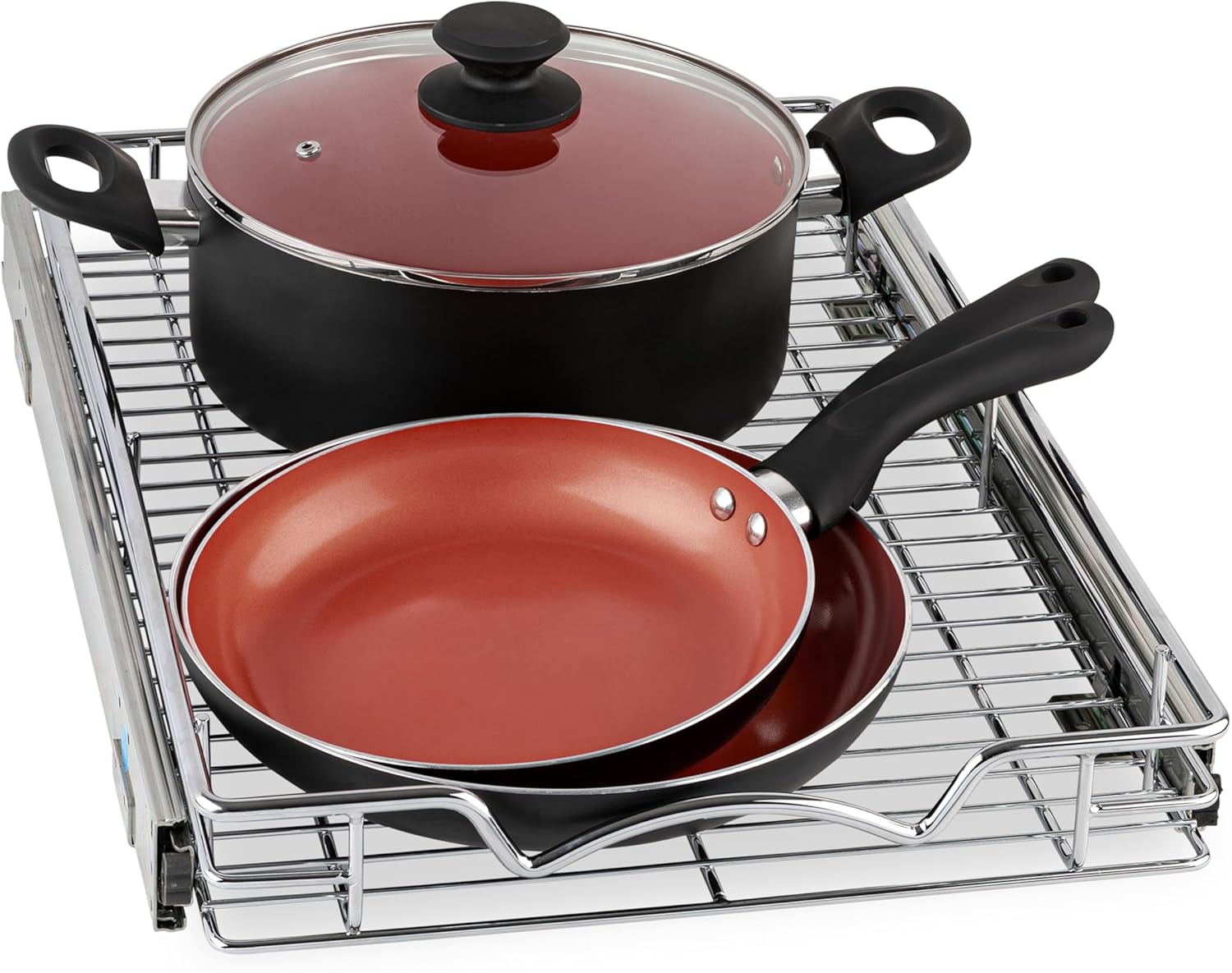 HOLD N' STORAGE Pull Out Cabinet Organizer, Heavy Duty-w/Lifetime Limited Warranty -11”W x 17”D-Requires At Least 12-1/4” Cabinet Opening, Steel Metal Cabinet Drawers Slide Out, Chrome Finish