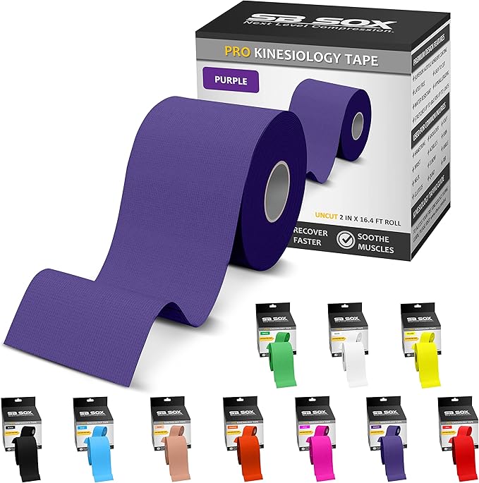 SB SOX Pro Synthetic Kinesiology Tape (Precut & Uncut Options) – Longer Lasting Performance Fabric Option to Our Original Cotton Kinesiology Tape - Also Latex Free, Water Resistant! (Purple - Uncut)
