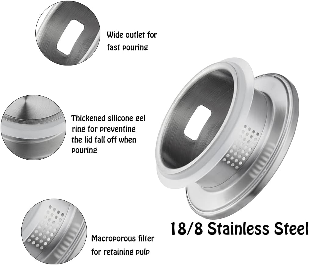 - [Lid with 2 Pouring Outlets] The lid is removable and has a smooth surface. The pitcher’s lid has one outlet for fast water pouring and the other for filtration, the macroporous filter can keep ice, large pieces of fruit and tea bags inside the pitcher. Moreover, the pitcher is not airtight because it has two outlets.