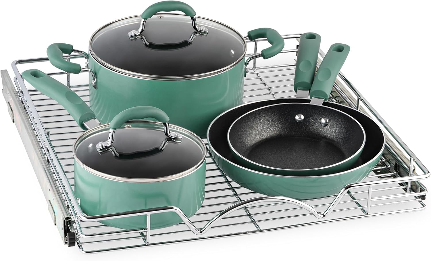 - A MUST HAVE PULL OUT DRAWER: This sliding cabinet organizer installs in under 30 minutes and makes it super easy to store, organize, and access spice rack, pots, and baking sheets.