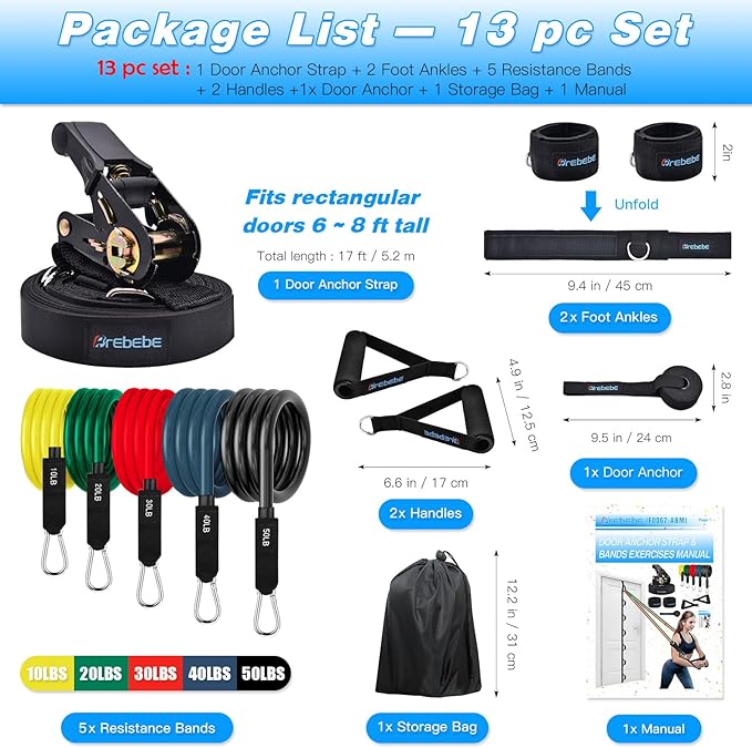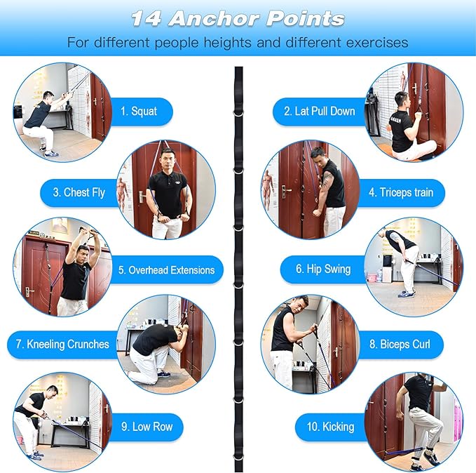 Brebebe Upgrade Door Anchor for Resistance Bands Exercise, Multi Points Anchor With 7 Loops + 7 D Rings, Home Gym Workout Equipment With Ratchet Adjust Tighten Strap, Not Loose, Sturdy