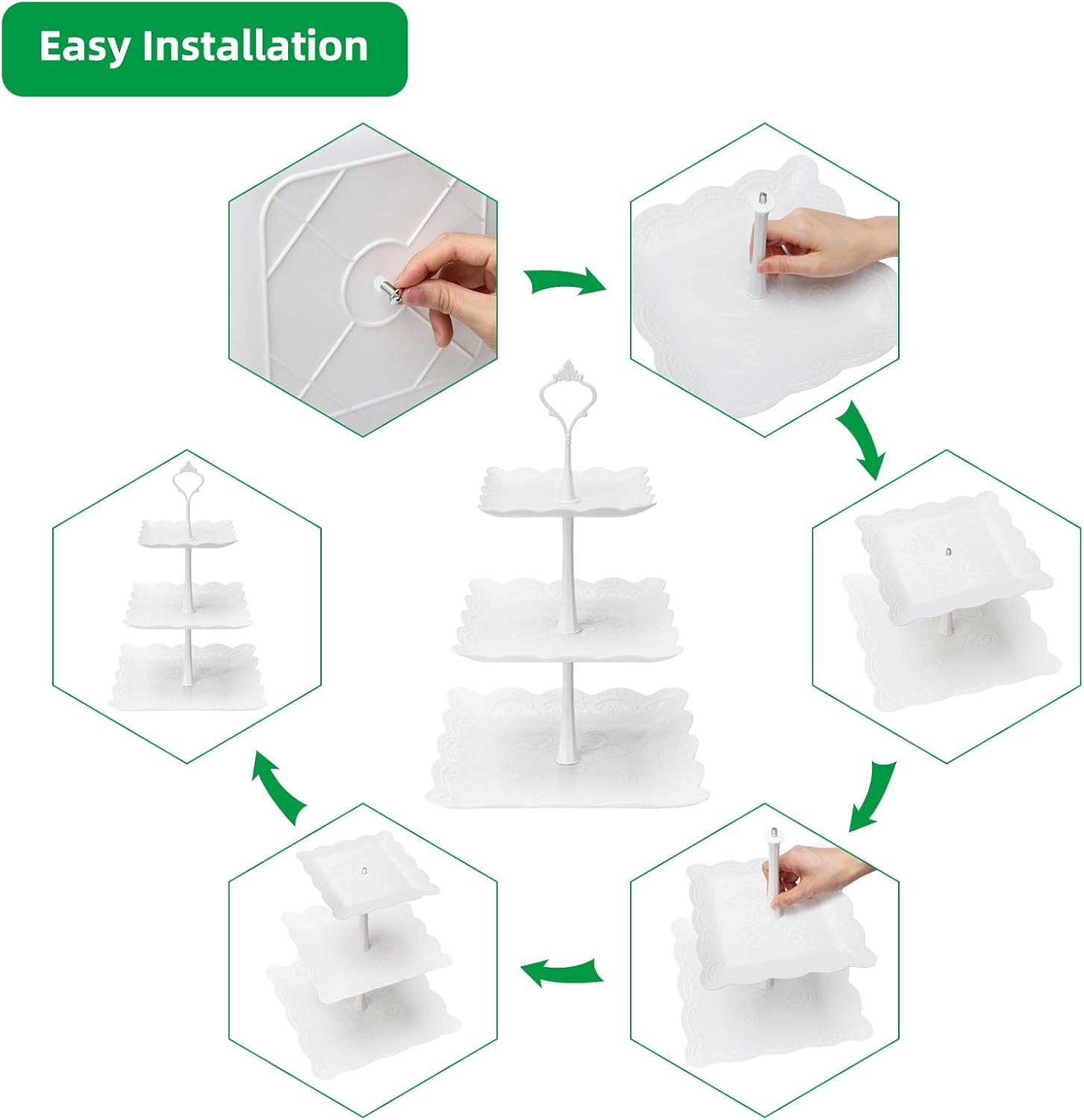 - Easy to Assemble: The whole cupcake stand has strength and stability by connecting the tiers with solid pillars and screws. Easy to assemble and requires no tools.