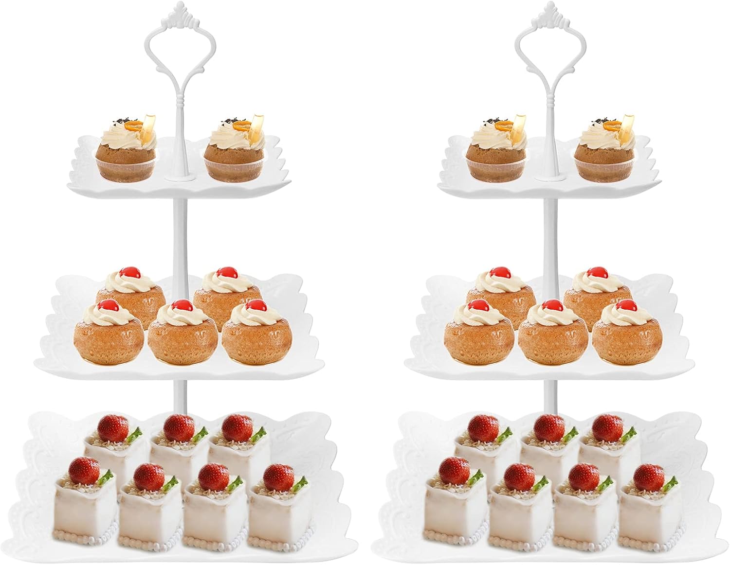 - Food Grade Material: 3 tiered serving stand are made of food safety PP material, stable and lightweight, perfect for displaying cupcakes, appetizers, brownies and other party treats.