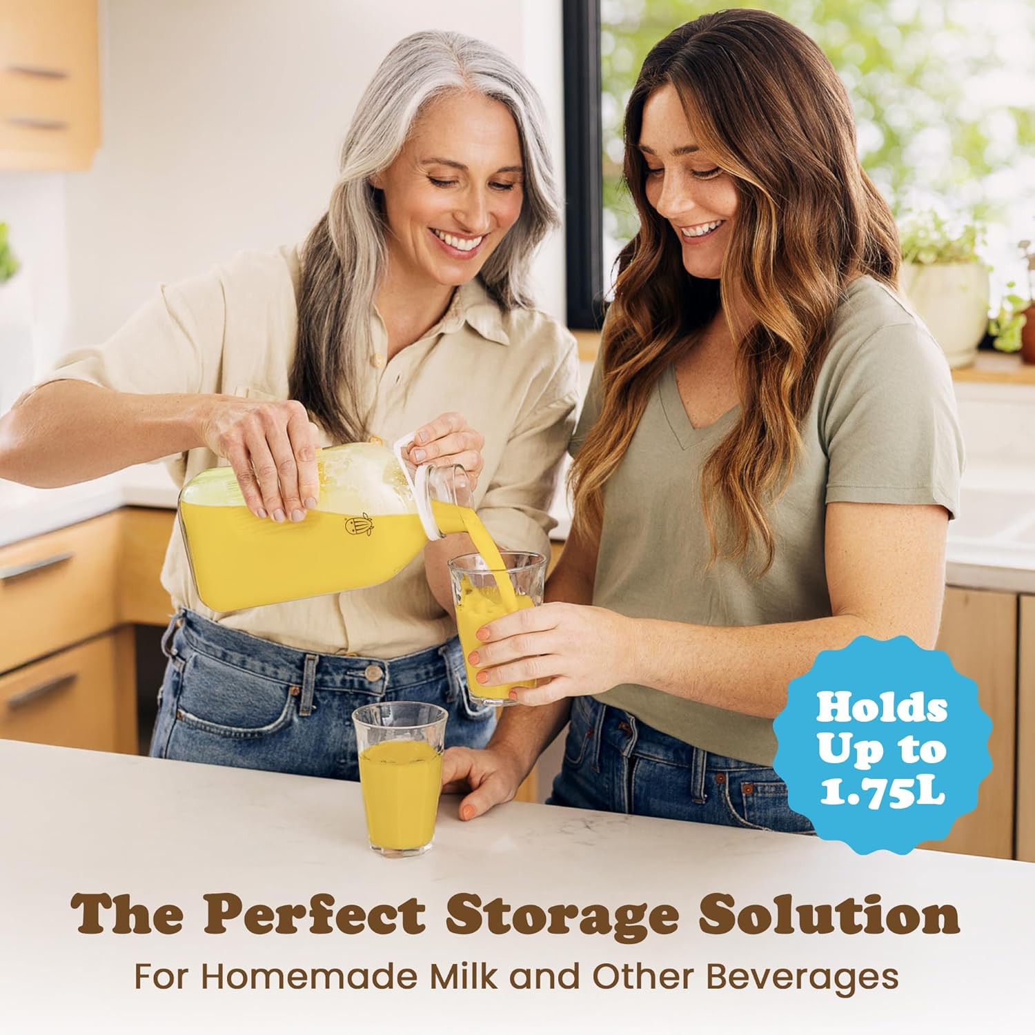 - Keeps Your Countertop Mess-Free - No more unsightly spills and stains with the Almond Cow milk storage containers. Each glass jug with spout has a wide-lip design to keep milk and other liquids from leaking once poured into separate liquid storage containers.