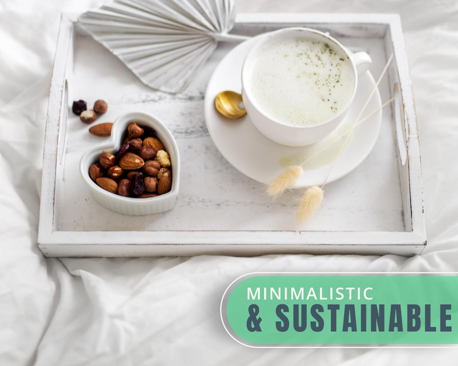 - Farmhouse wooden serving trays: Use them to serve drinks, breakfast in bed, coffee at hotels, bars, or coffee shops. Made from natural bamboo wood, these durable serving trays will help you do the tasks you need while also saving nature by being biodegradable.