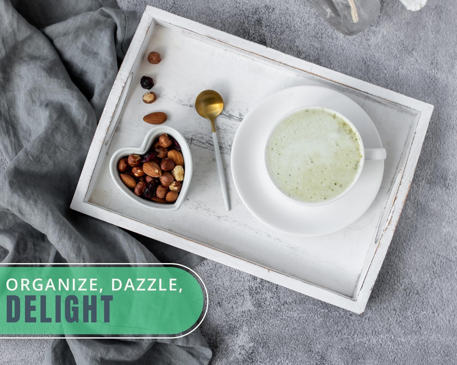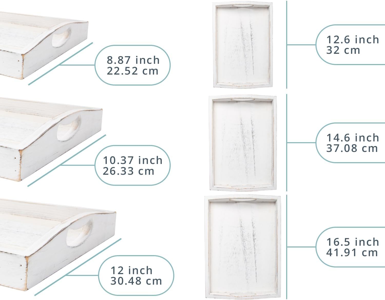 Serving Trays Set of 3 - Ottoman Wood Trays for Entertainment, Food and Decor - Rustic Farmhouse Distressed Wood Finish - Solid White