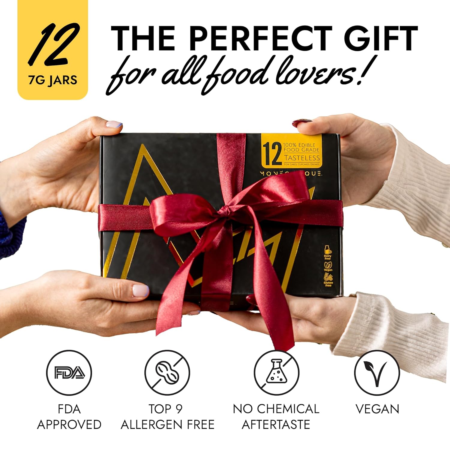 - THE PERFECT GIFT FOR CREATORS - Unleash culinary creativity with the MONÉGASQUE Luster Dust Edible Glitter 12Pcs Set. Ideal for baking gifts for women, men, and anyone who loves to cook, this versatile collection is perfect for inspiring delicious projects and transforming ordinary bakes into masterpieces. Perfect for bakers of all skill levels.