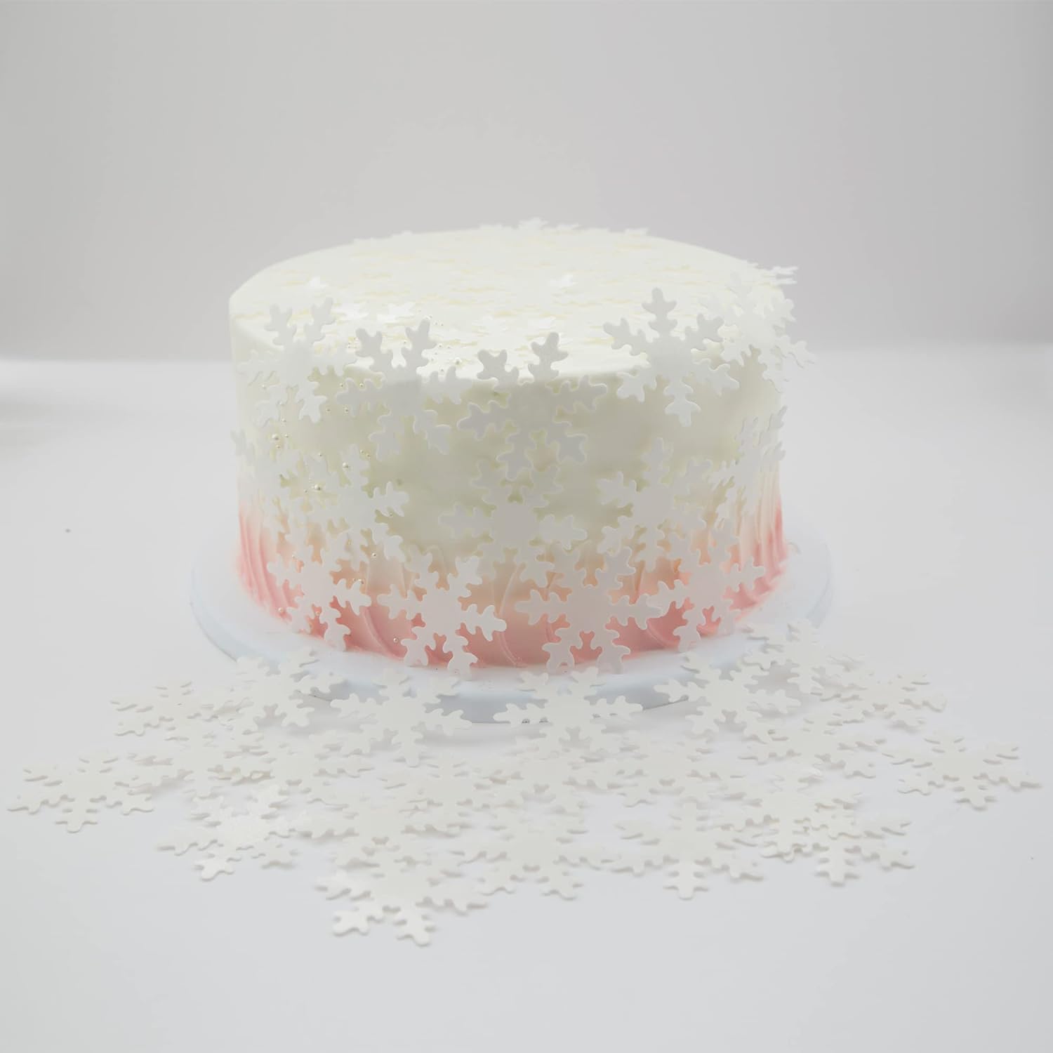 - ❄Package included: 50Pcs Edible Snowflake Cupcake Toppers with a box. 100% Edible, Pre-cut and very easy to use, so you can insert into your cake directly, which make your cake more interesting.