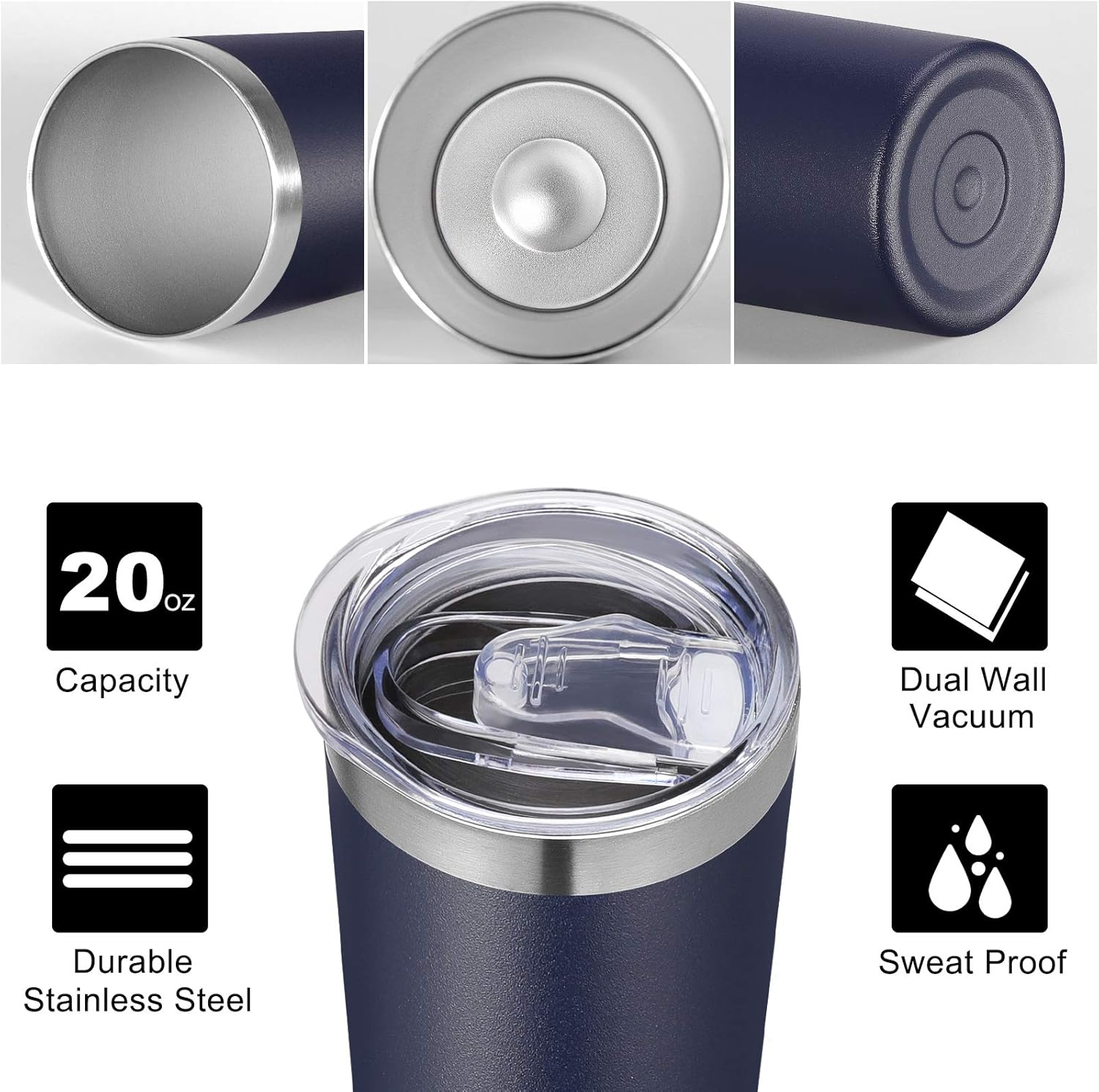 VEGOND Stainless Steel Tumblers Bulk 8 Pack, 20 oz Vacuum Insulated Skinny Tumblers with Lid and Straw, Double Wall Coffee Mug, Travel Water Cup, Navy Blue