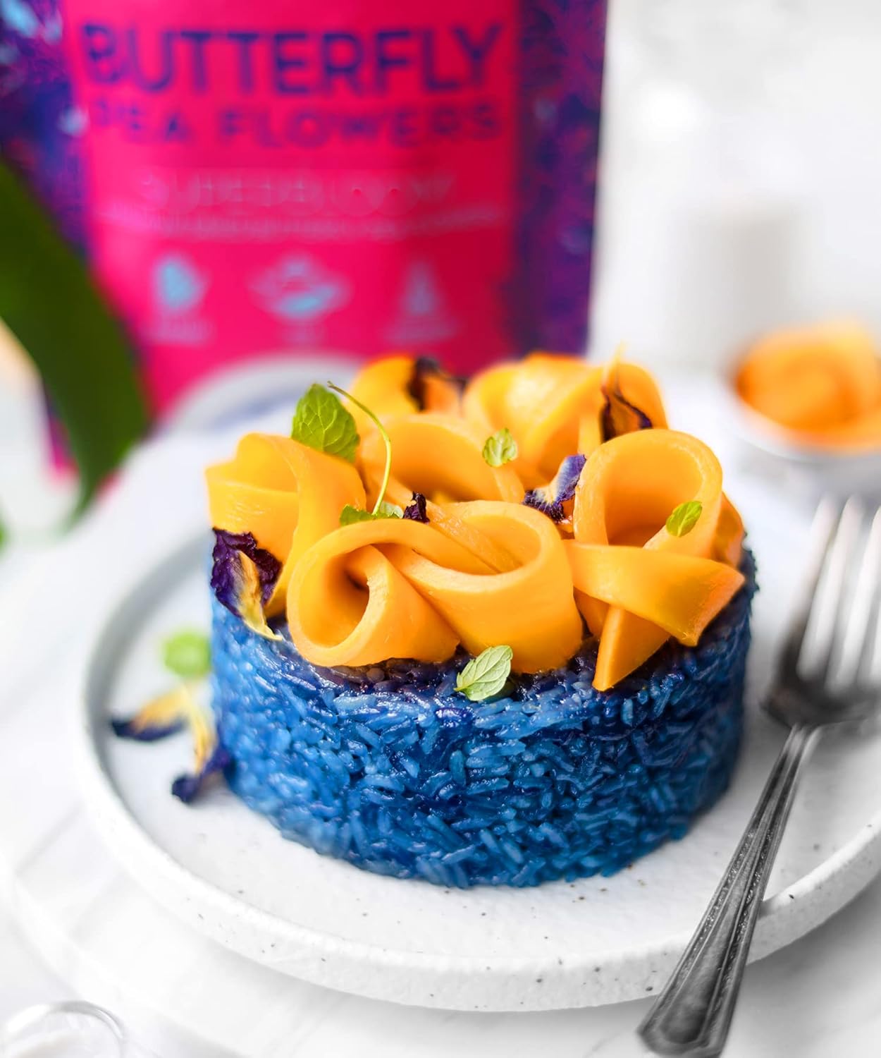 - Tips And Tricks - These beautiful flowers aren't just meant to make teas; they're a spectacular way to add color and aroma. Try infusing them into your water when you're making your next batch of rice or noodles and create gorgeous blue meals that can magically turn into purple with the addition of citrus! Bonus: Suncore Foods blooms are great to mix together to create your very own super blend