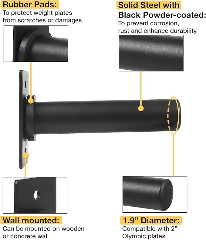 - SPACE-SAVING SOLUTION: A2ZCare Wall Mounted Weight Plate Holders are the perfect alternative for bulky and space-consuming weight plate trees. Easily mount to any CONCRETE or WOOD wall. Comes with all mounting hardware for your comfort.