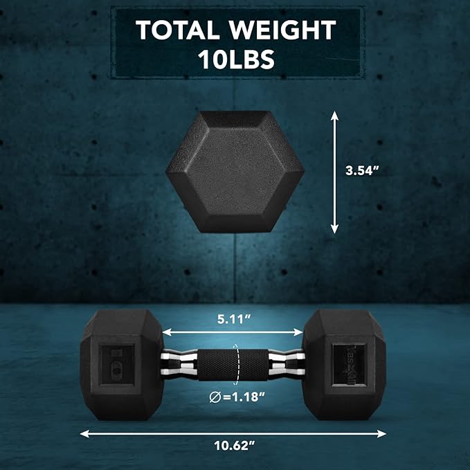 - VARIOUS CHOICES FOR YOUR LEVEL: choose the right level from our wide range of hex rubber dumbbell, including 10, 15, 20, 25, 30, 35, 40, 45, 50lbs, which is sold in individual