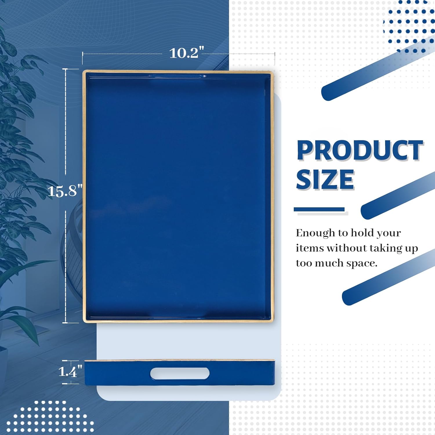 - EASY TO CLEANING: Coffee table tray featuring a classic rectangle design with a navy blue glossy finish and golden top edging, brings a elegance and adds a beautiful touch. Modern blue serving tray has a smooth surface that is waterproof and easy to clean, just use a damp cloth to clean.